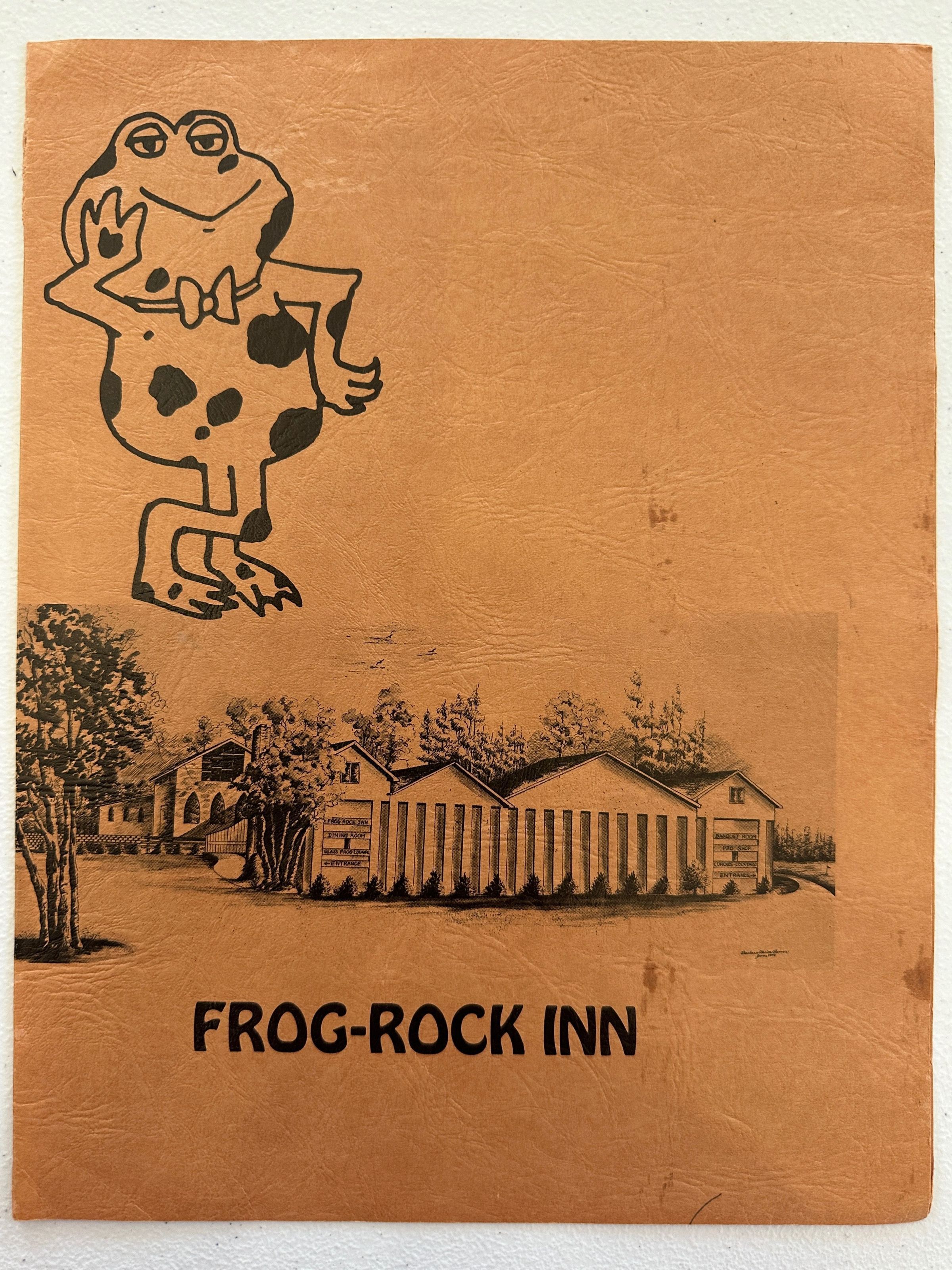Frog Rock Inn Menu- featuring a full menu of Appetizers, Beef entrees, Fish, Italian Specialties, Pasta, House Specialties, and Salads. The restaurant served luncheons and dinners, and also accommodated dancing, banquet facilities, and other special packages. Unfortunately, the Inn burnt to the ground in 2025.Acquisition
