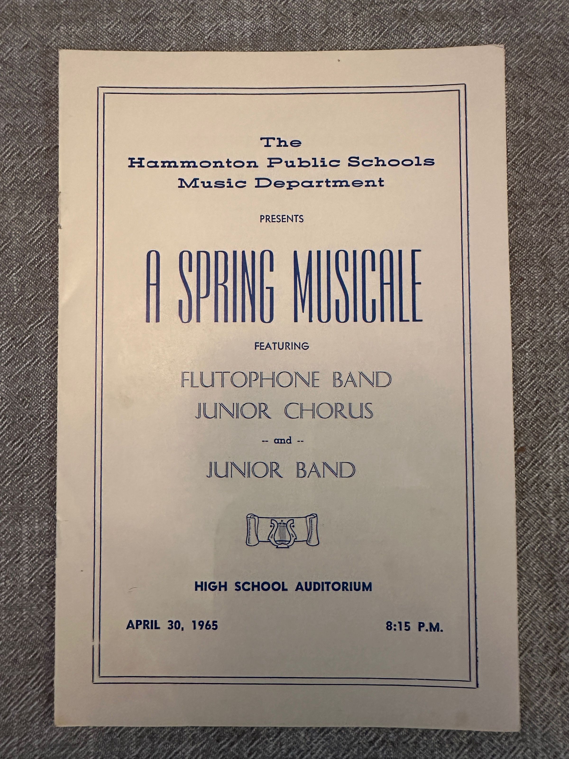 Hammonton Public School “Spring Musicale” program featuring Flutophones, the Junior Chorus and Junior Band. Concert performed on April 30, 1965.Acquisition