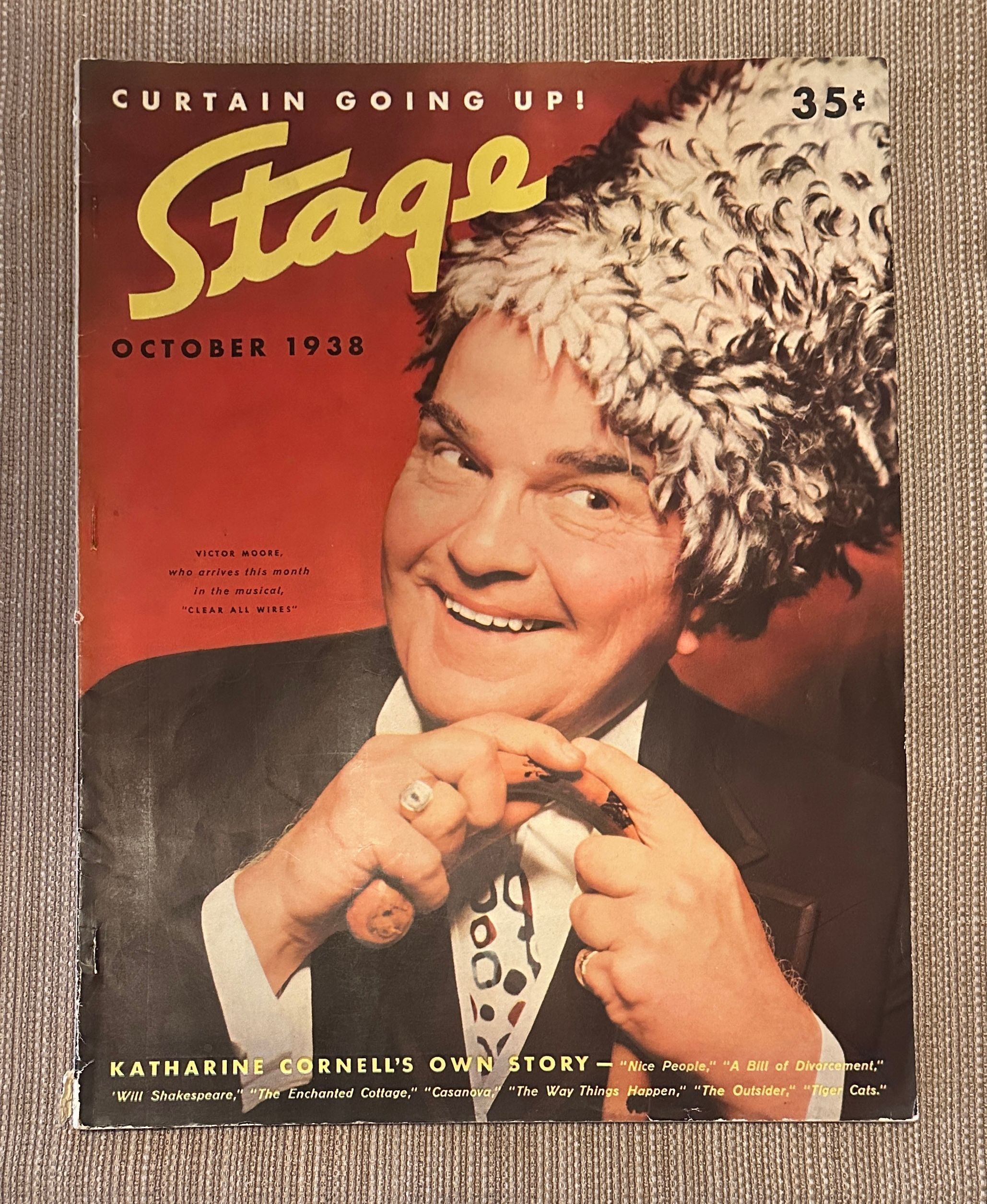 STAGE Magazine, October 1938, [complete]. Cover: color photo of Victor Moore. Black & white group photo includes Victor Moore, p. 22.10" x 13".Acquisition