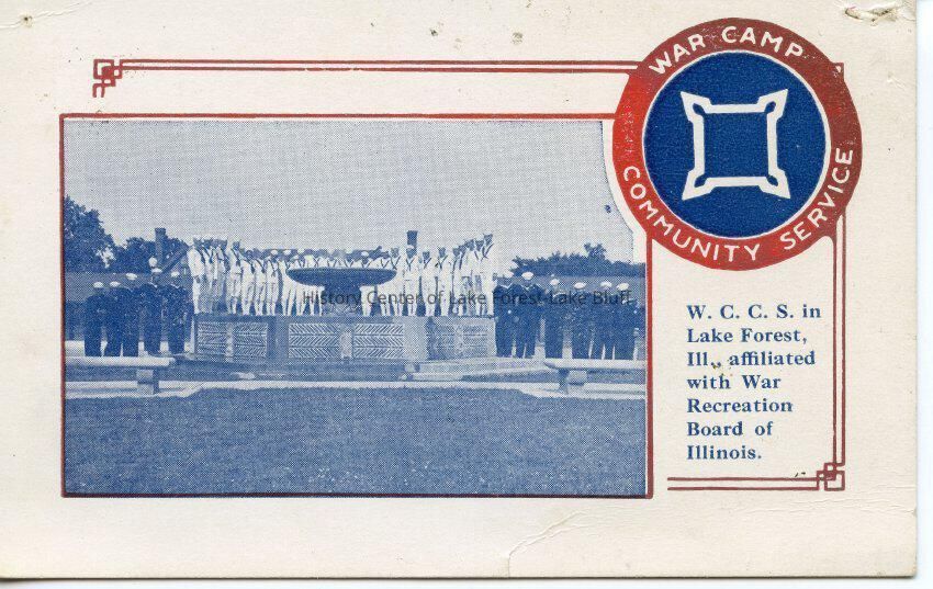 War Camp Community Service. W.C.C.S. in Lake Forest is affiliated with the War Recreation Board of Illinois. Photograph of sailors.