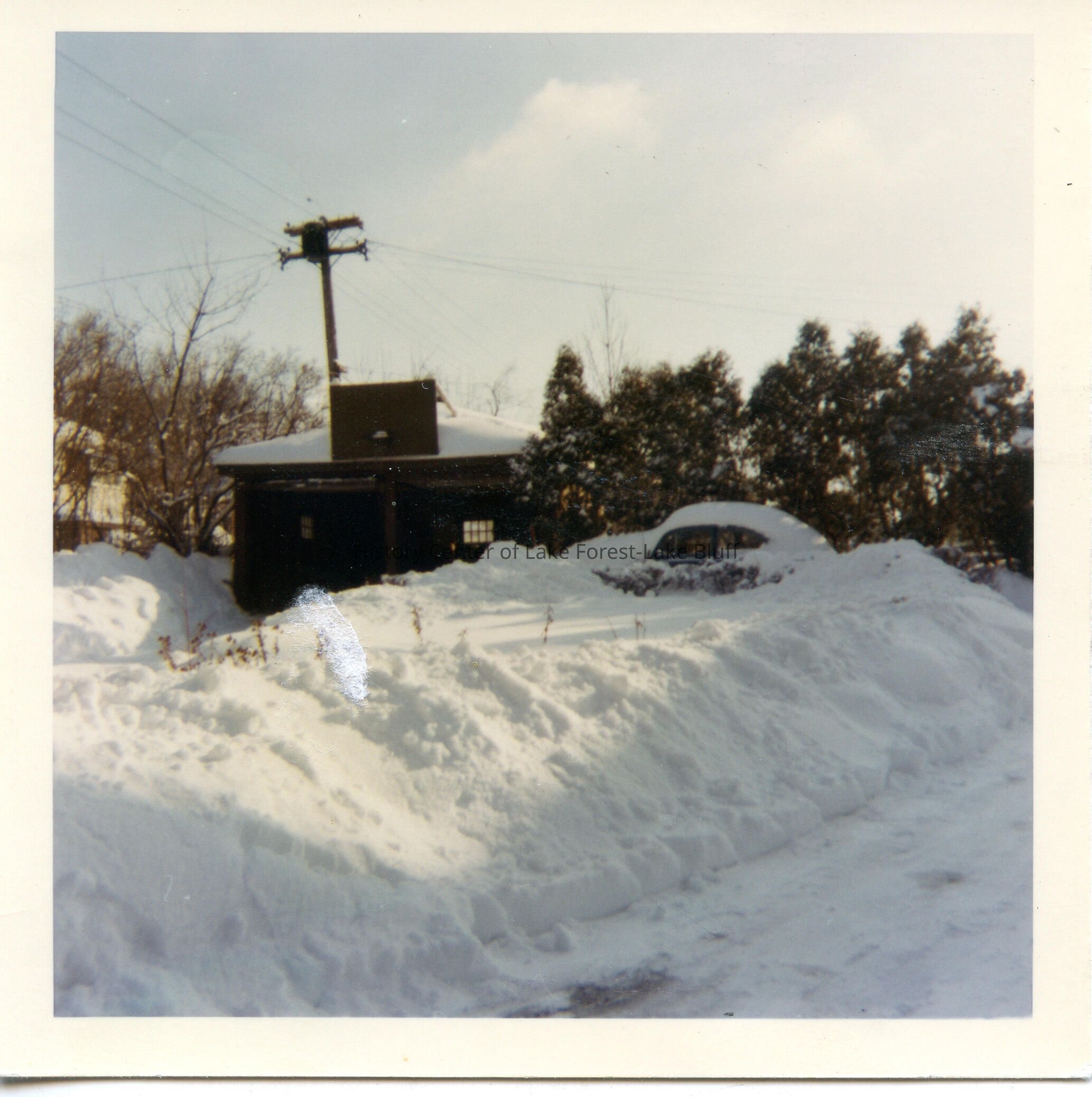 139 Woodland garage. Piles of snow. Winter. 1967.