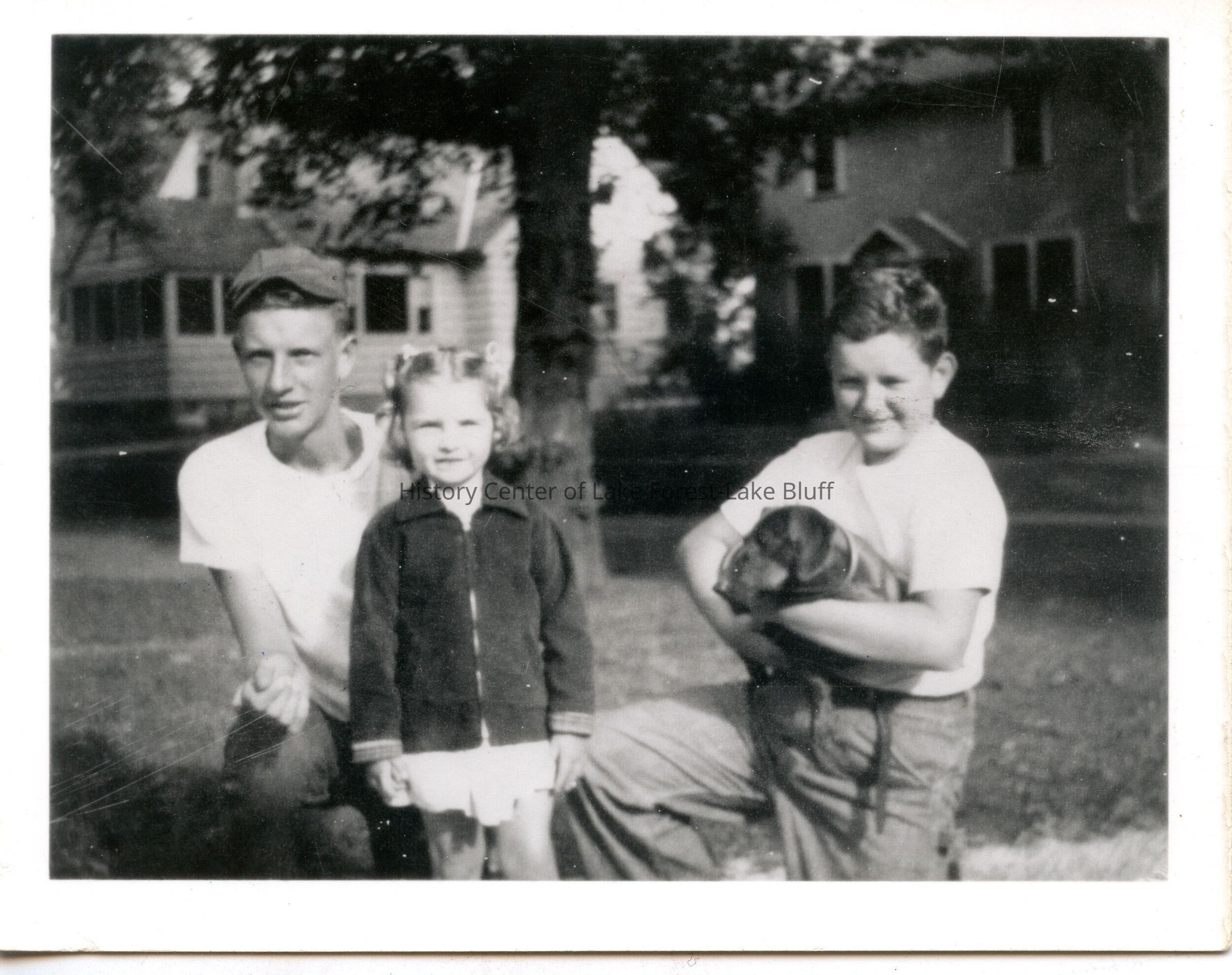 Joe, David, Susan Jane O'Neill and dog Fritz at 139 Woodland Road, circa 1951.