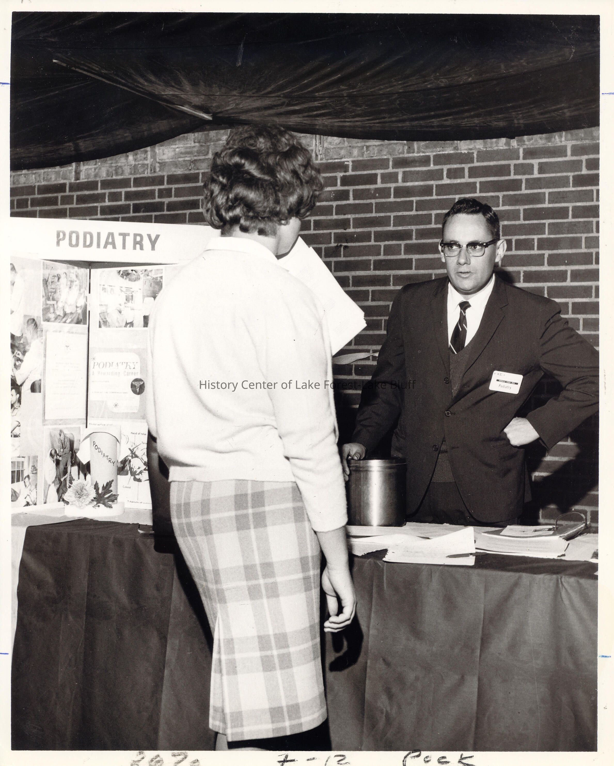 Job Fair: Dr. Arnold Peck, Podiatry, explaining his profession to an interested girl.