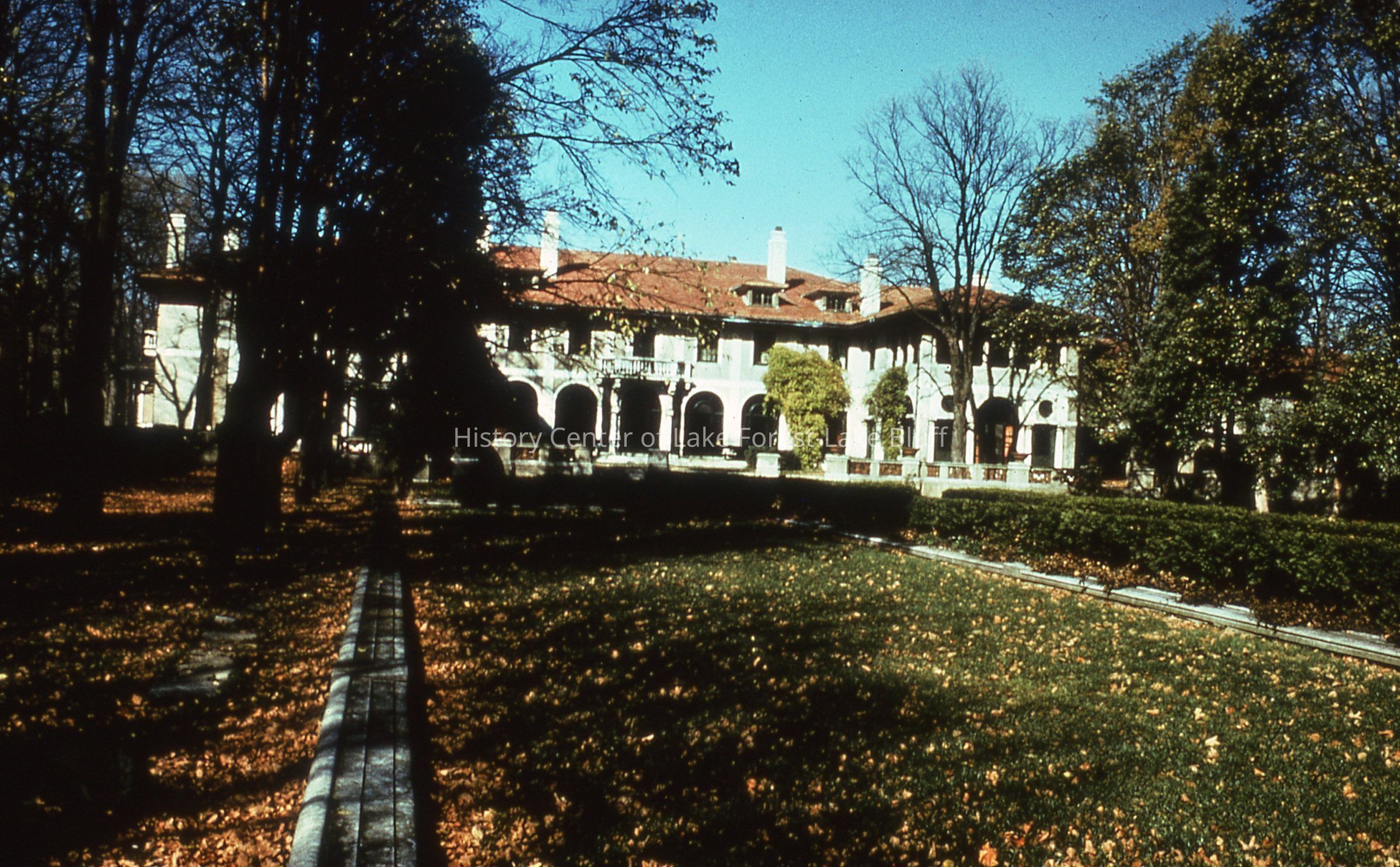 "Originally the J. Odgen Armour estate. Architect Arthur Heun, 1909. Later bought by Insell to be a country club, into bankruptcy with depression, Lake Forest Academy in late '40s when their building burnt down on campus."