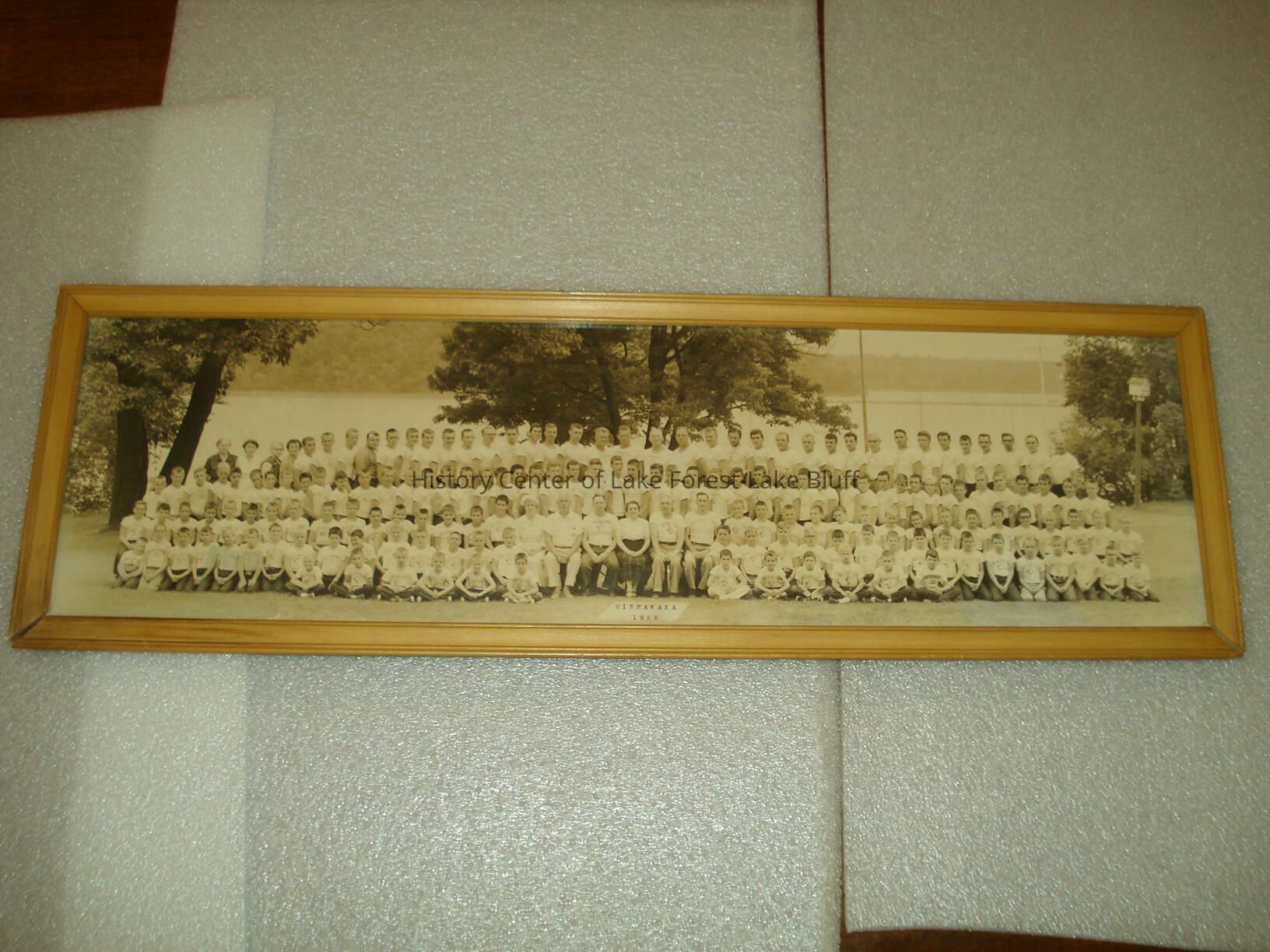 Framed panaromic view of 1955 Mishawaka summer camp.