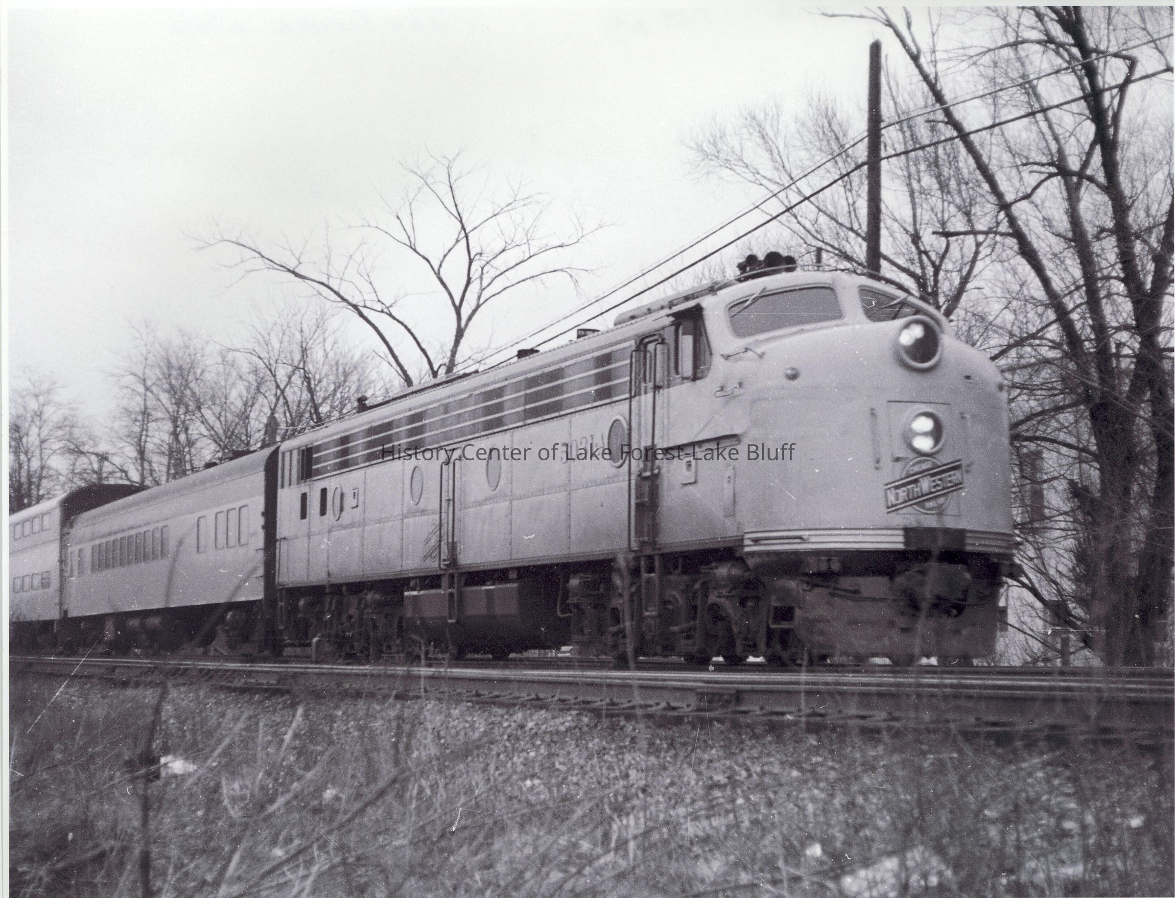 Feb. 27, 1971, Highland Park, 5031-A train at 1:24 p.m. Chicago and Northwestern Railway. Picture shows subscription cars and regular bilevels, outbound.Lexicon
