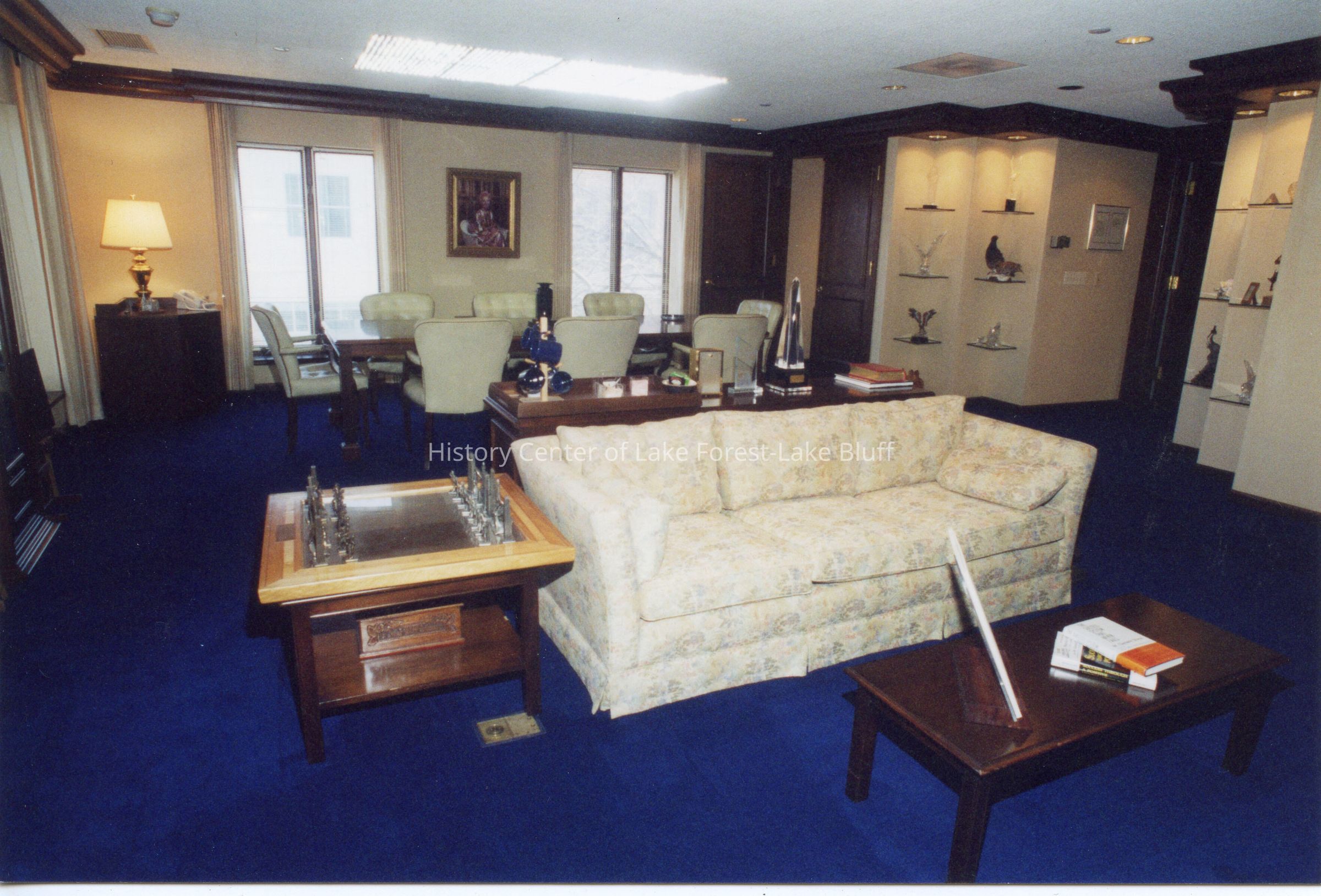 Color photograph of interior of W. Clement Stone office at 207 Westminster. View of couch and conference table.