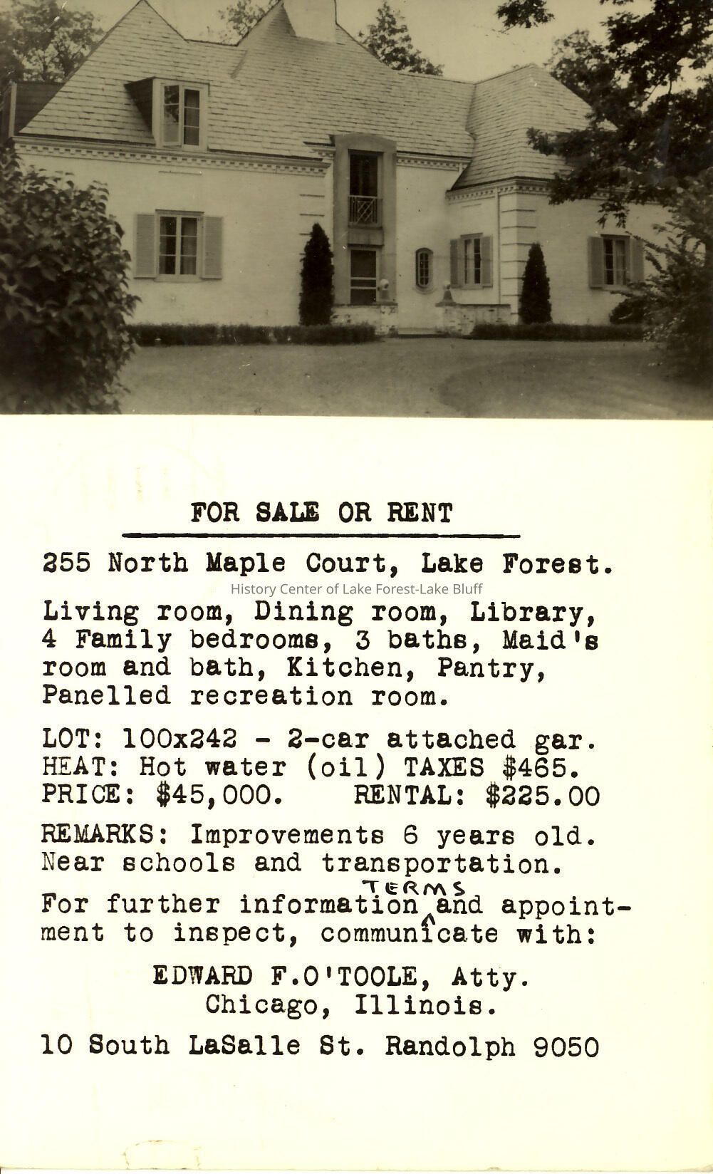 Fred. W. Shafer House 255 North Maple Court Lake Forest owner: Fred W. Shafer architect: Boyd Hill 1936