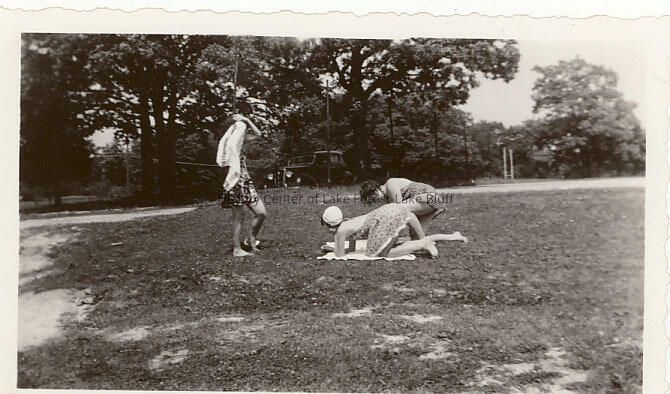 Lake Forest YWCA - Young Women's Christian Association Y.W.C.A. Summer Camp 1936-1937 three girls in swimsuits Lake Forest Academy Campus (Sheridan and Maplewood Road)