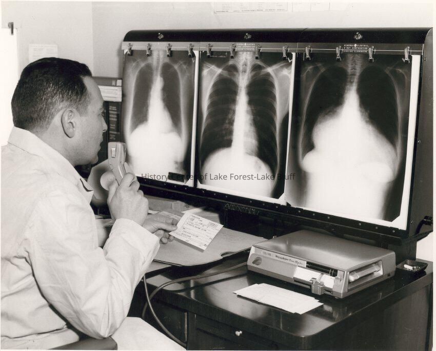 Dr. Melamed dictating results of x-ray reviews into dictaphone.