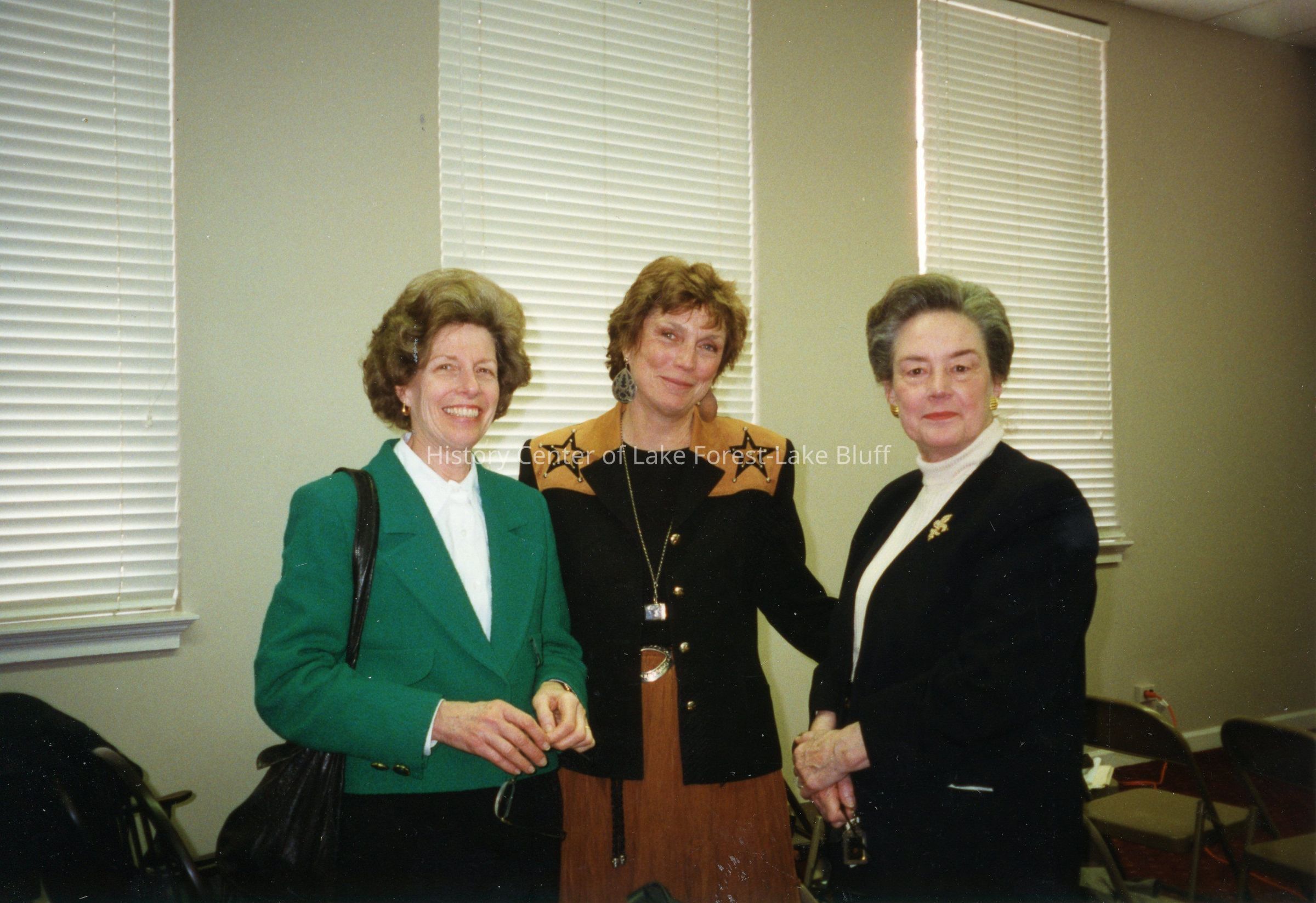 Three members of the Market Square Questers pose for a photo. The woman on the left is identified as Sue Henderson. The woman on the right is possibly Marilynn Lovell.Photograph Details