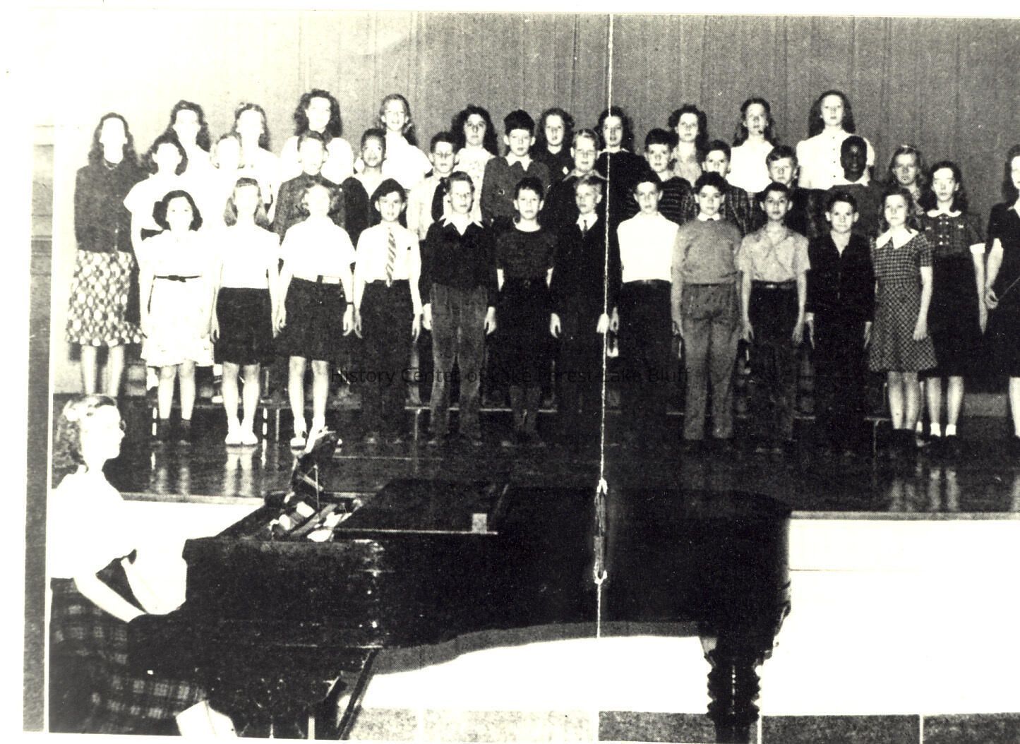 Students on stage, music recital ? Gorton School ? photo may have been from a booklet or program