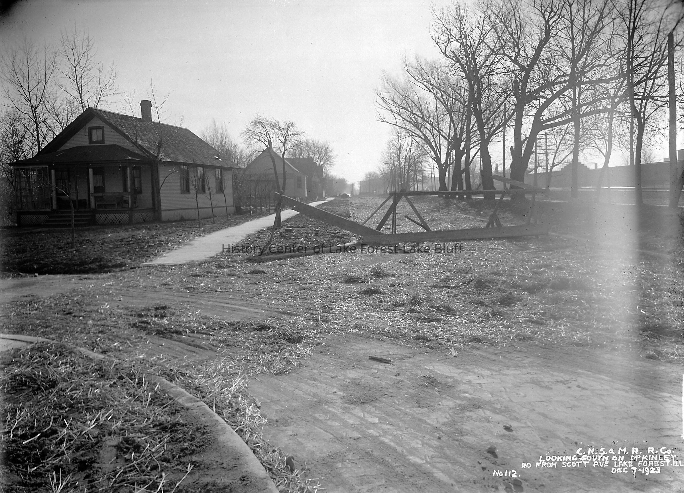 Chicago, North Shore & Milwaukee Railroad The new McKinley Road is still not complete on December 23, 1923. We are looking south from Scott Street. images are also on a CD (1982.3.1 - 1982.3.29)