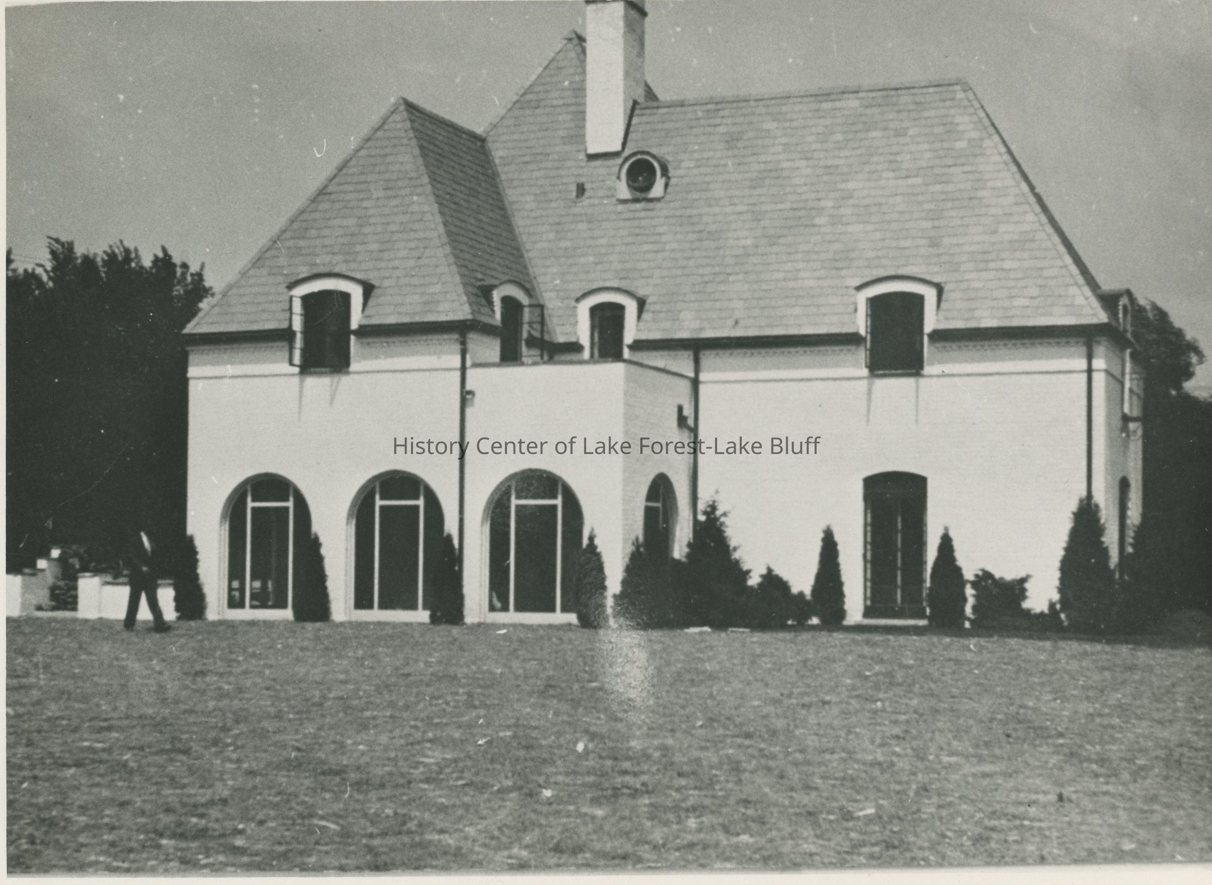 Photograph of 380 N. Chiltern Drive from the driveway. Possibly a copy of original photo. Dating unknown, but original photo was taken sometime in the 1920's, based on the car in the driveway.Photograph Details