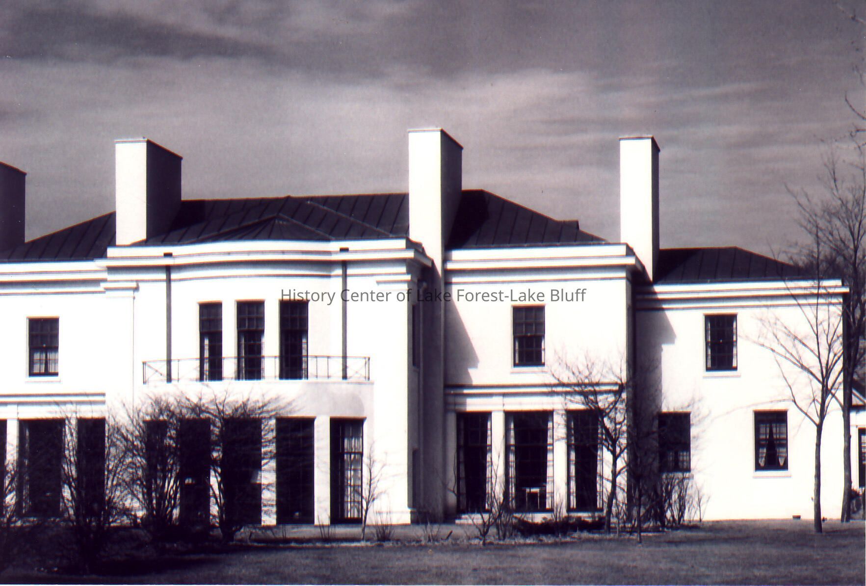 Exterior of Walter Frazier home built for Duncan and Sarah Hodges in 1930. Located at 85 E. Westminster in Lake Forest, Illinois. (Black and White Image)