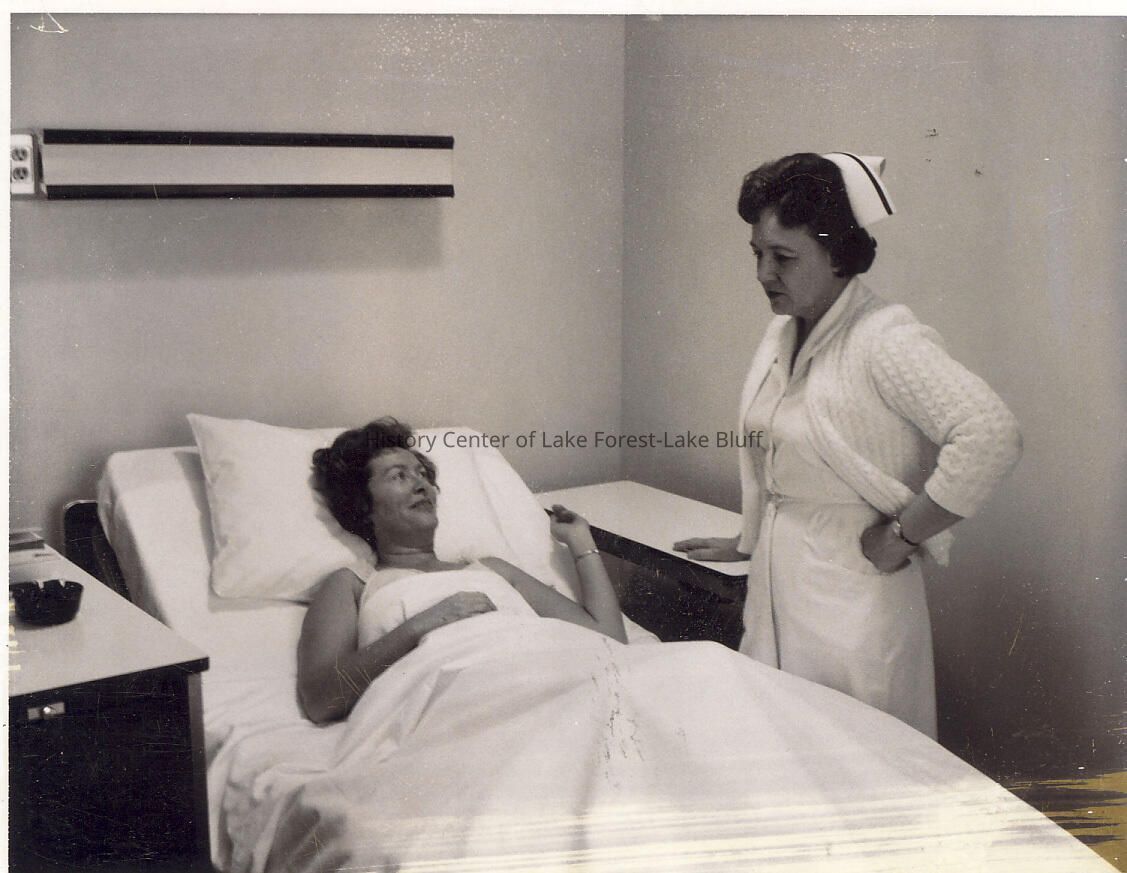 Nurse Robinson standing over hospital bed occupied by female patient.