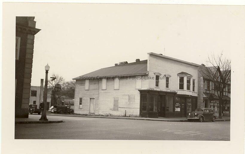 Fitzgerald Plumbing Building, 245 East Deerpath, at the corner of Deerpath and Bank Lane. Also listed as 253 East Deerpath. Fitzgerald moved to 179 East Deerpath by 1946.