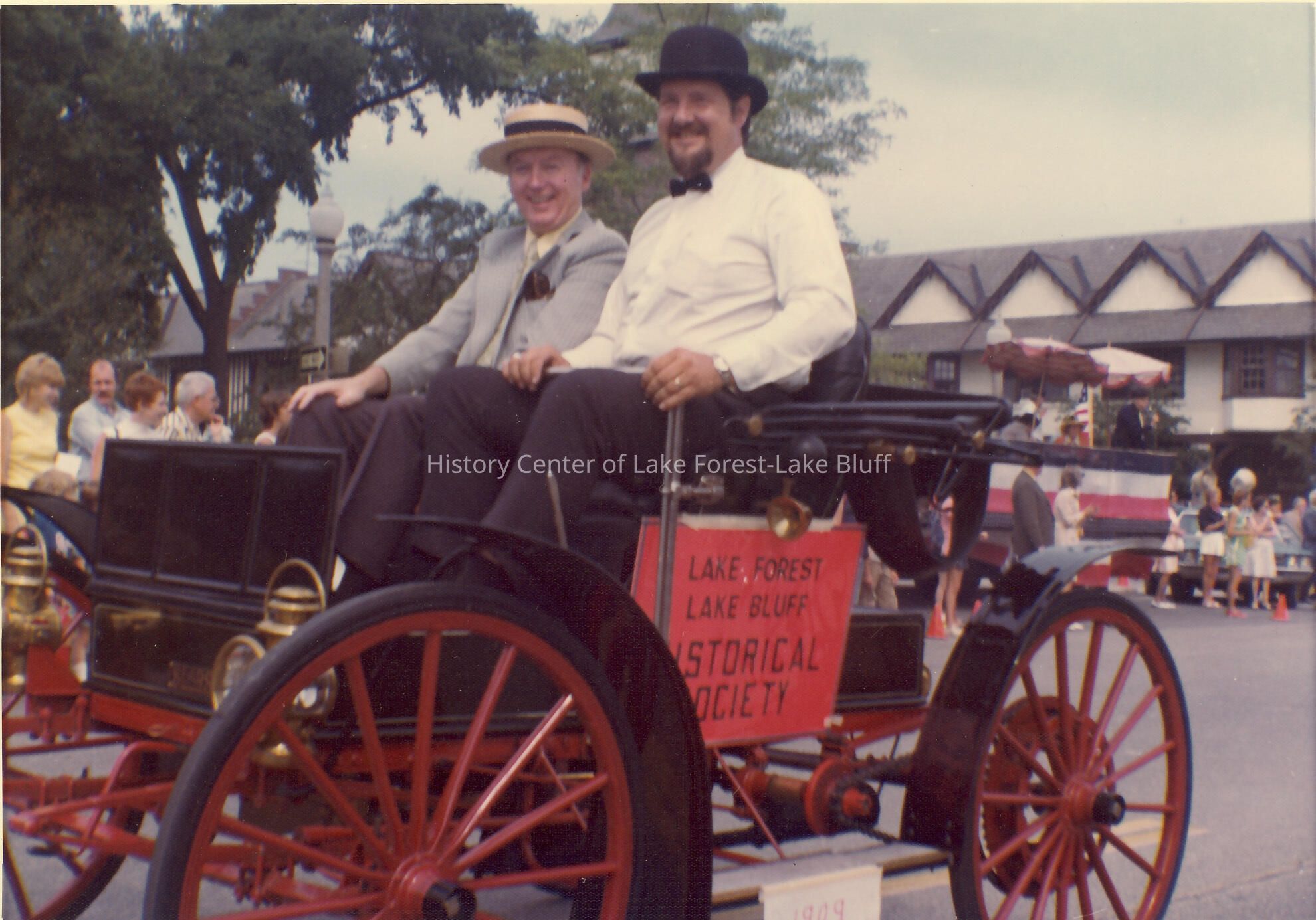 Lake Forest Lake Bluff Historical Society entry in the 1974 parade passing the judging stand
