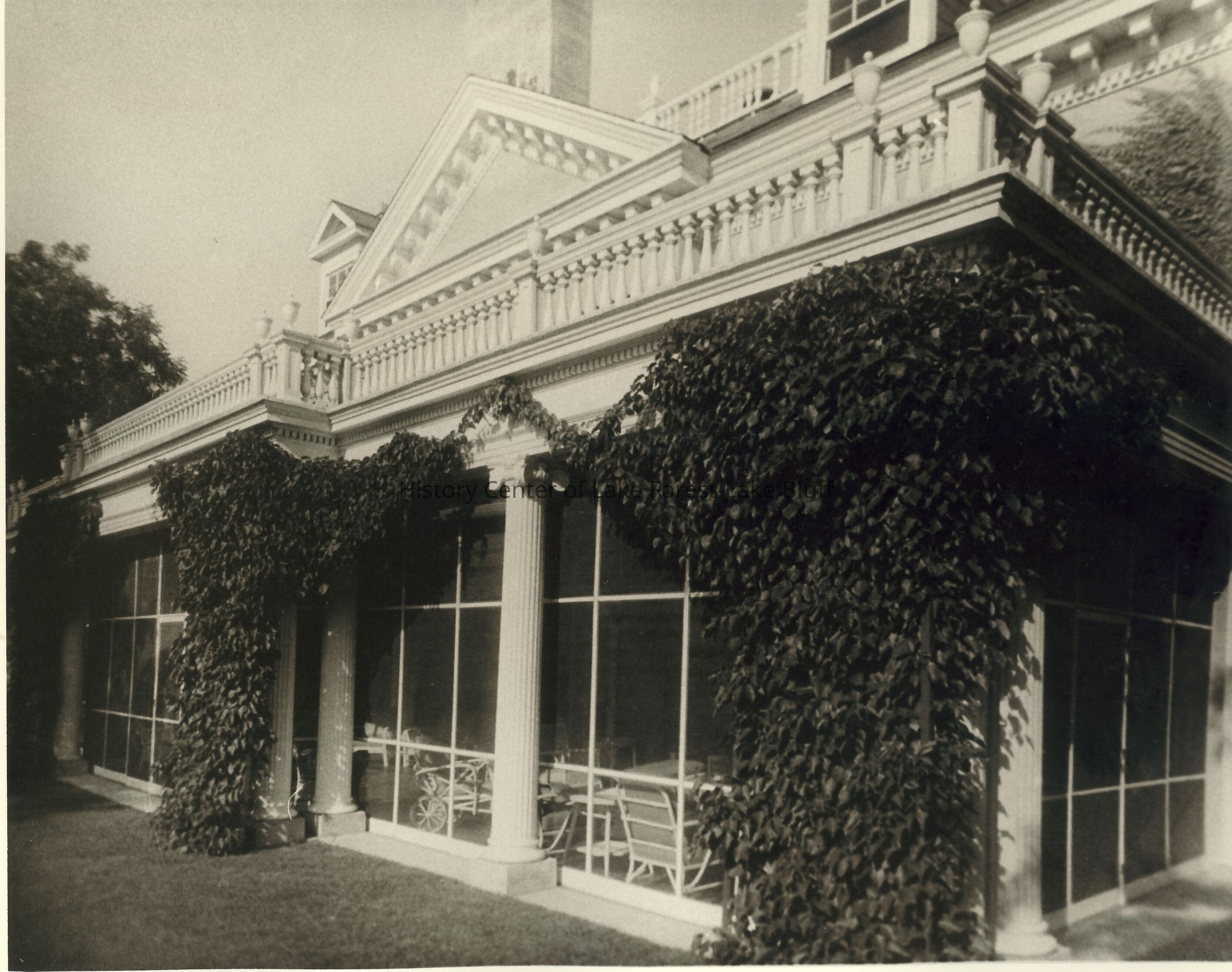 Original property stretched from Green Bay Road to the Skokie River valley and from Westminster Avenue on the north almost to Pembroke Drive on the south. Garage designed by Stanley Anderson in 1928. Carriage house at 530 N. Green Bay; Chauffeur's quarters at 454 Oakwood; Servants' quarters at 210 Vine.