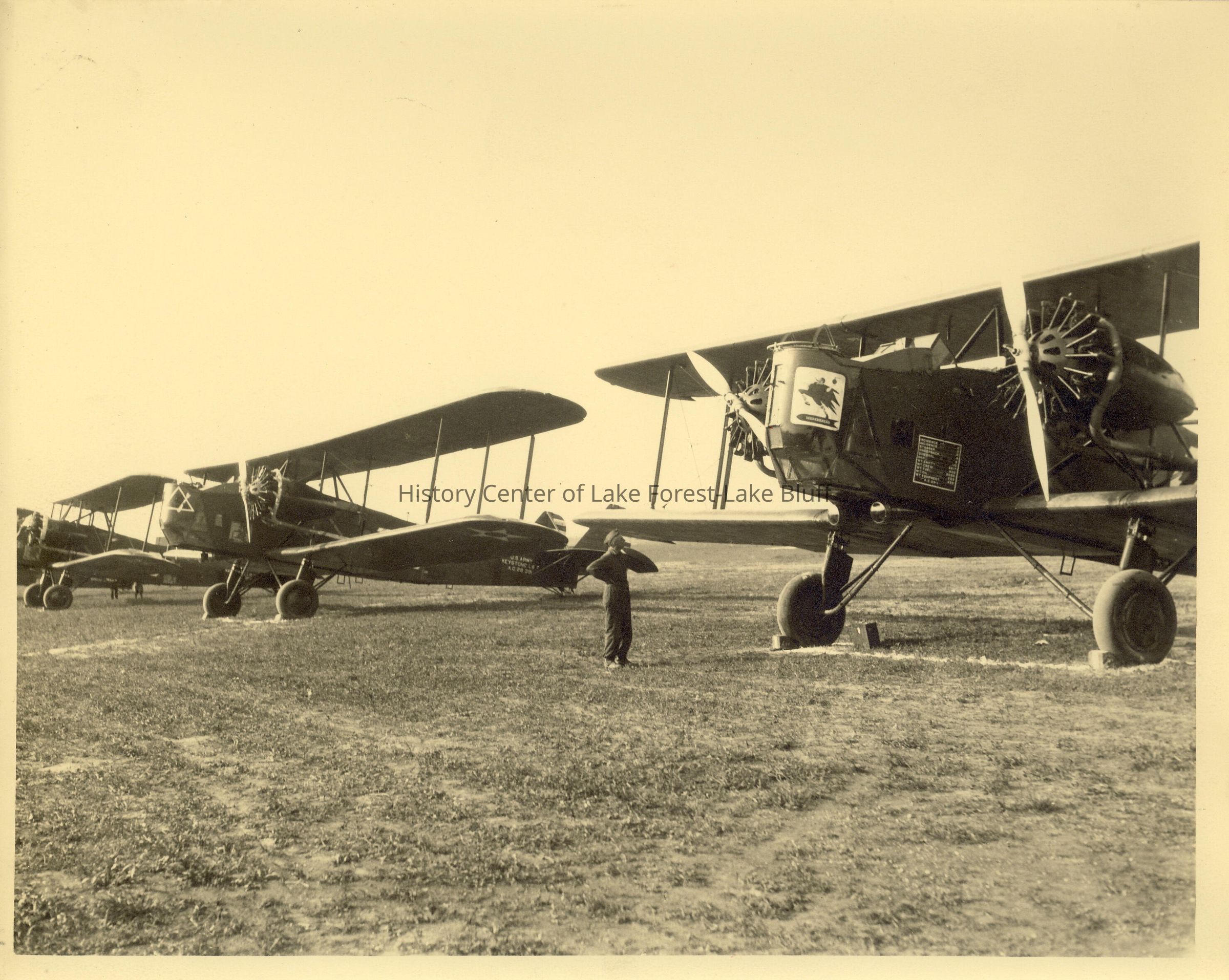 Airshow- Glenview? (Naval Air Station) 3 planes in row with man looking at one in the foreground.
