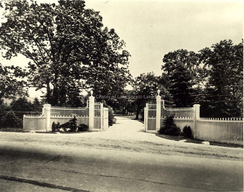 Longmeadow entrance gates 95 South Waukegan Road owner: Edward Craft and Mattie Belle Fiske Green; Joseph R. Histed; Wesley M. Dixon architects: Hugh M. Garden; renovated by Stanley D. Anderson 1906