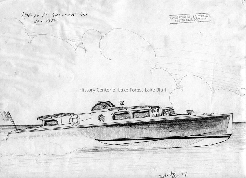 on the back of photo is a drawing of a boat or cruiser