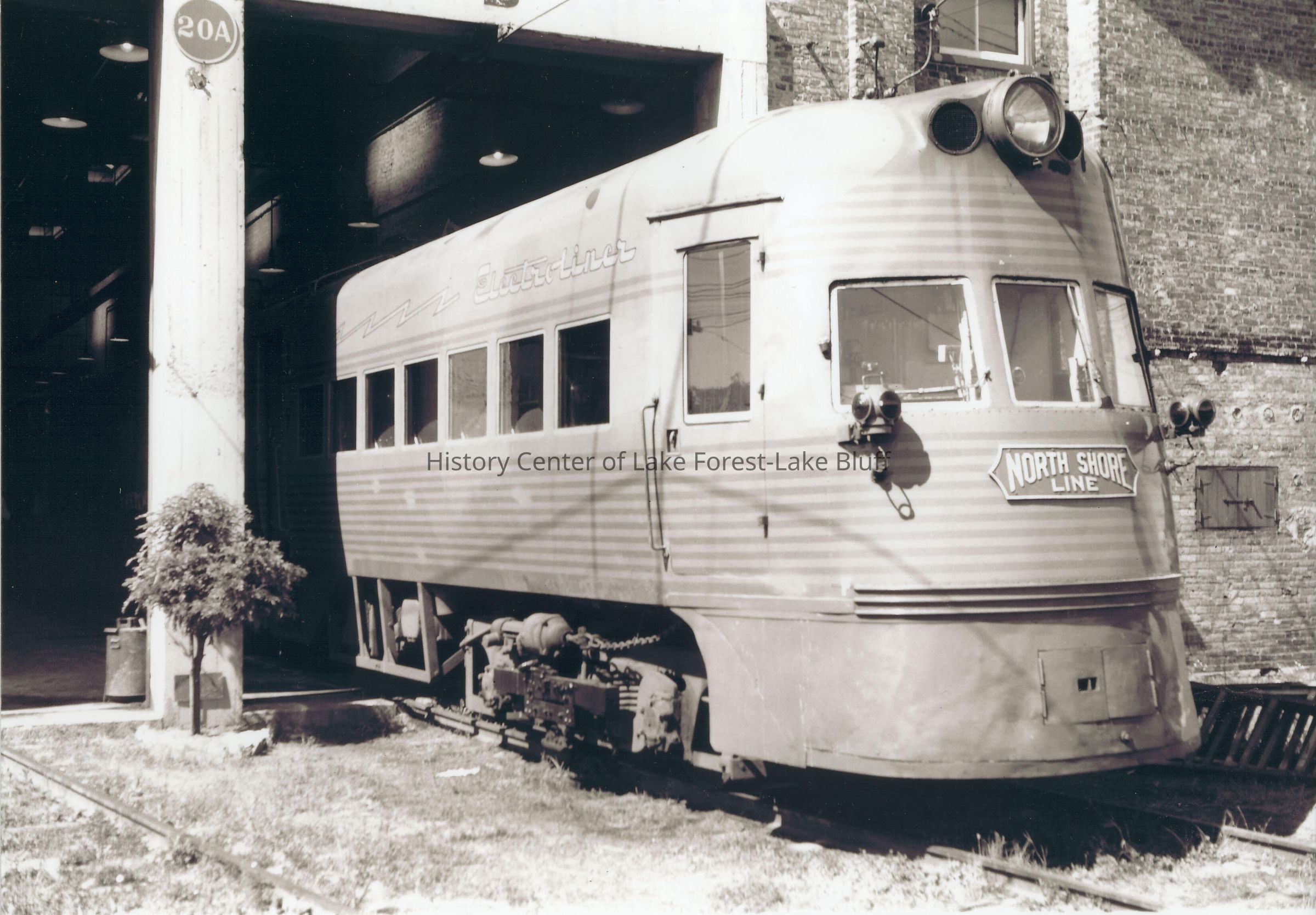 June 23, 1959, Highwood Shops, Chicago North Shore and Milwaukee Electroliner, probably 803-804 North Shore Line