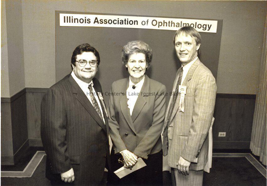 Virginia attending a meeting of the Illinois Association of Ophthalmology with two men - one is Norbert Becker, M.D, Vice President.
