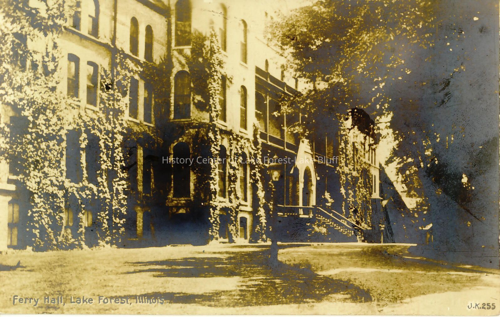 Postcard of Ferry Hall showing ivy-covered walls. Written from Anna to Sadie (Mrs. F.A. Plumback or Plumbeck); dated March 27 (year not visible) and addressed to South Bend.
