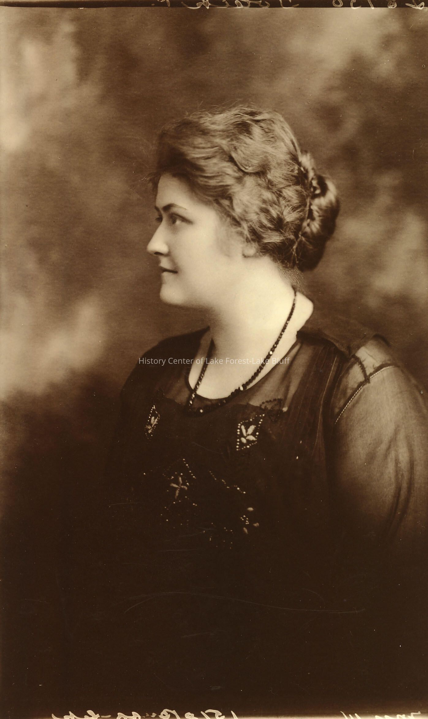 Portrait of young woman in dark top. Profile with hair up. same woman is in 2001.121.14
