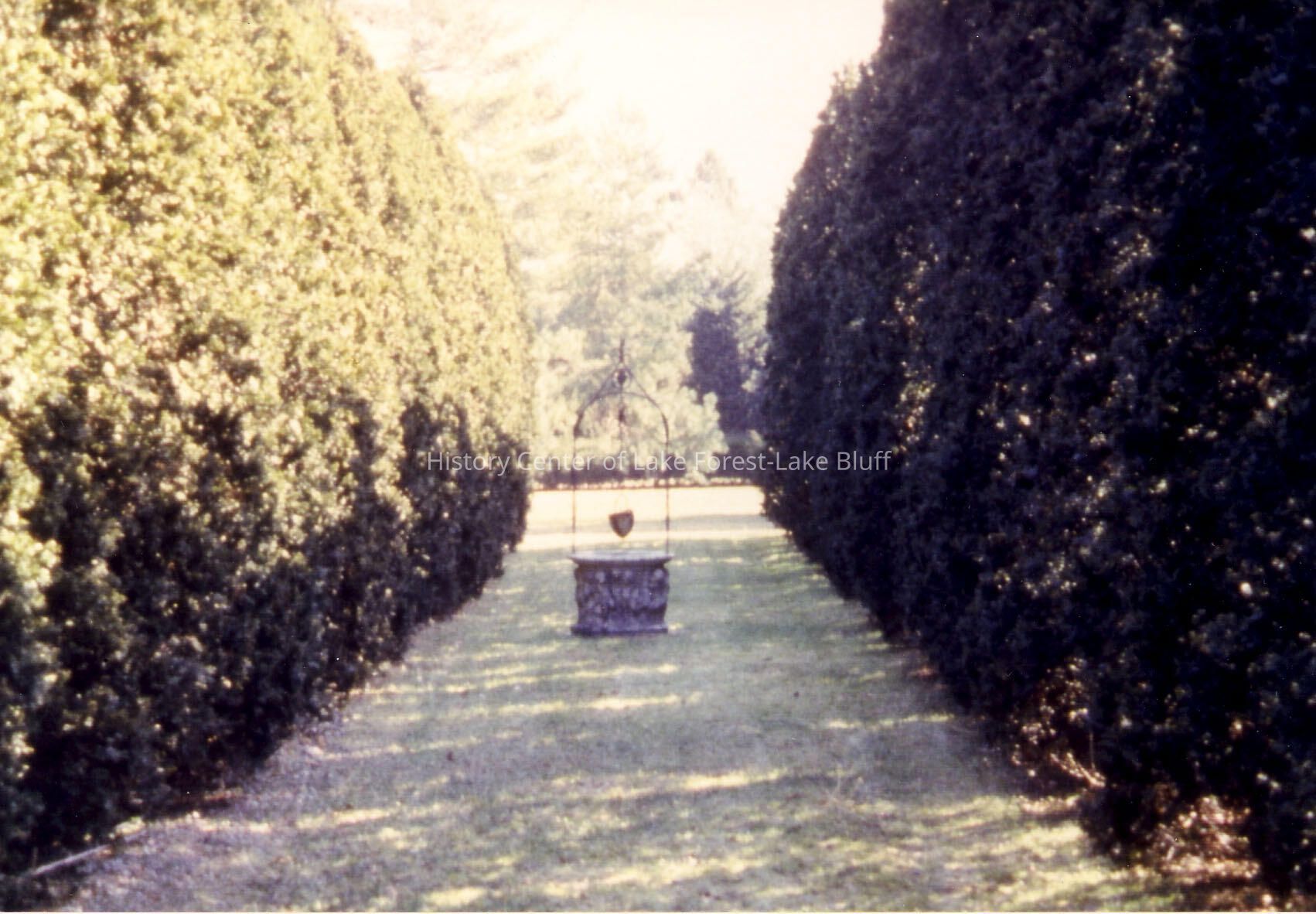 Color photograph of the Schweppe estate, Mayflower Place. wishing well on the grounds