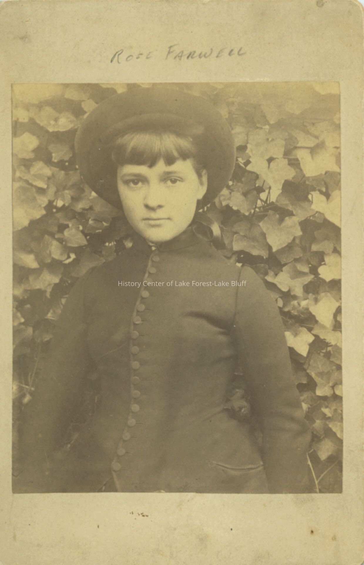 Sepia toned photograph of half portrait of Rose Farwell with an ivy backdrop. Later Mrs. Hobart Chatfield-Taylor