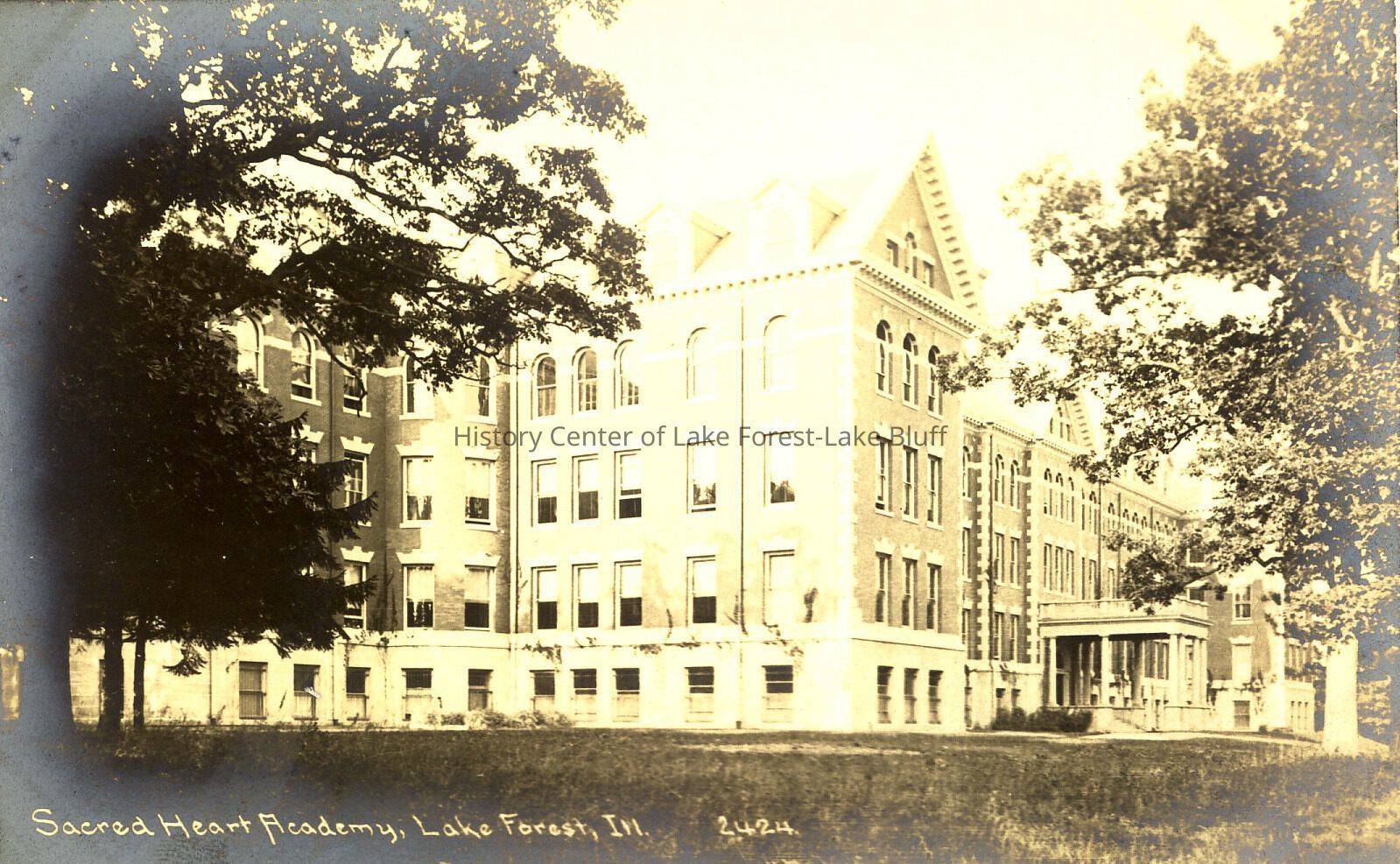 Postcard view of Sacred Heart Academy (later Barat College) in Lake Forest, probably between 1910 and 1920.