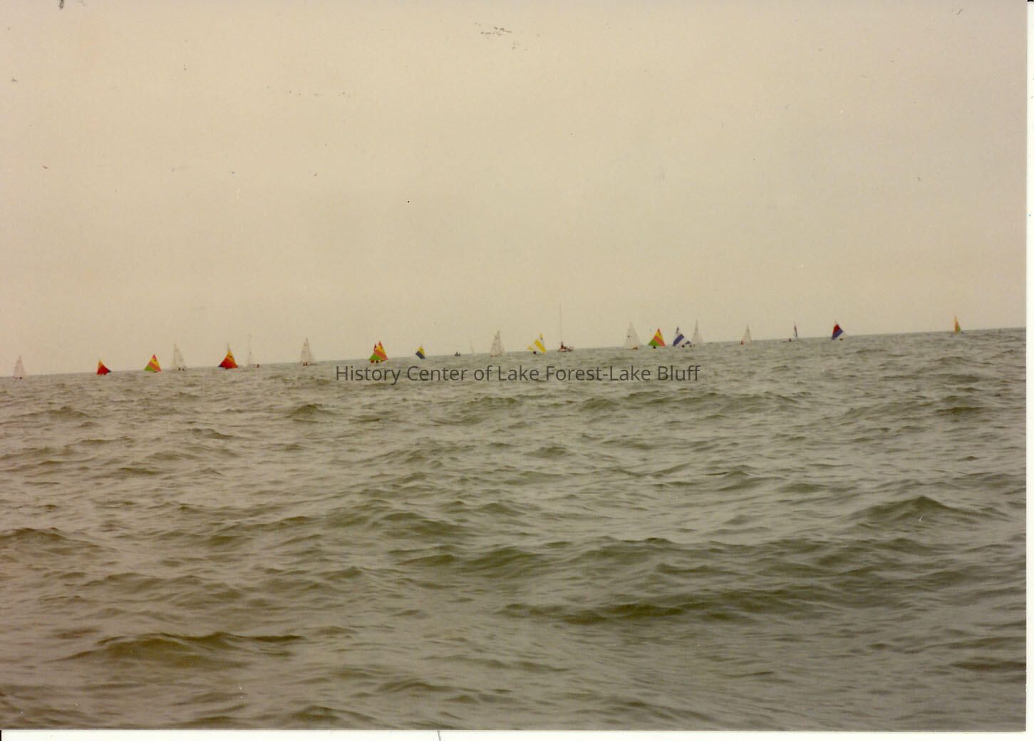 Sailboats racing in the distance in Lake Michigan off Forest Park beach.