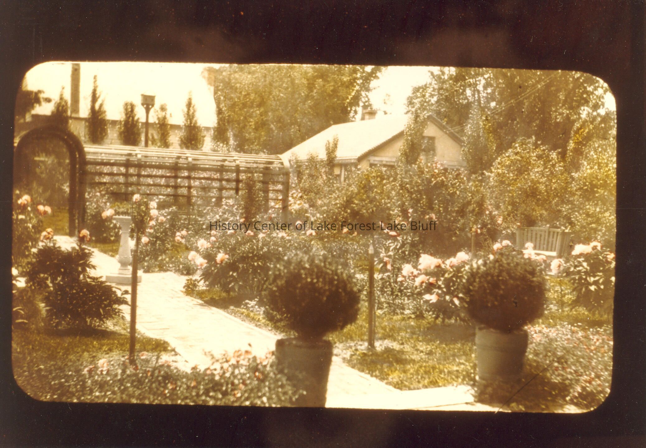 Photo print. Walled garden at 725 North Sheridan Road. Home of Miss Madeleine Newell.