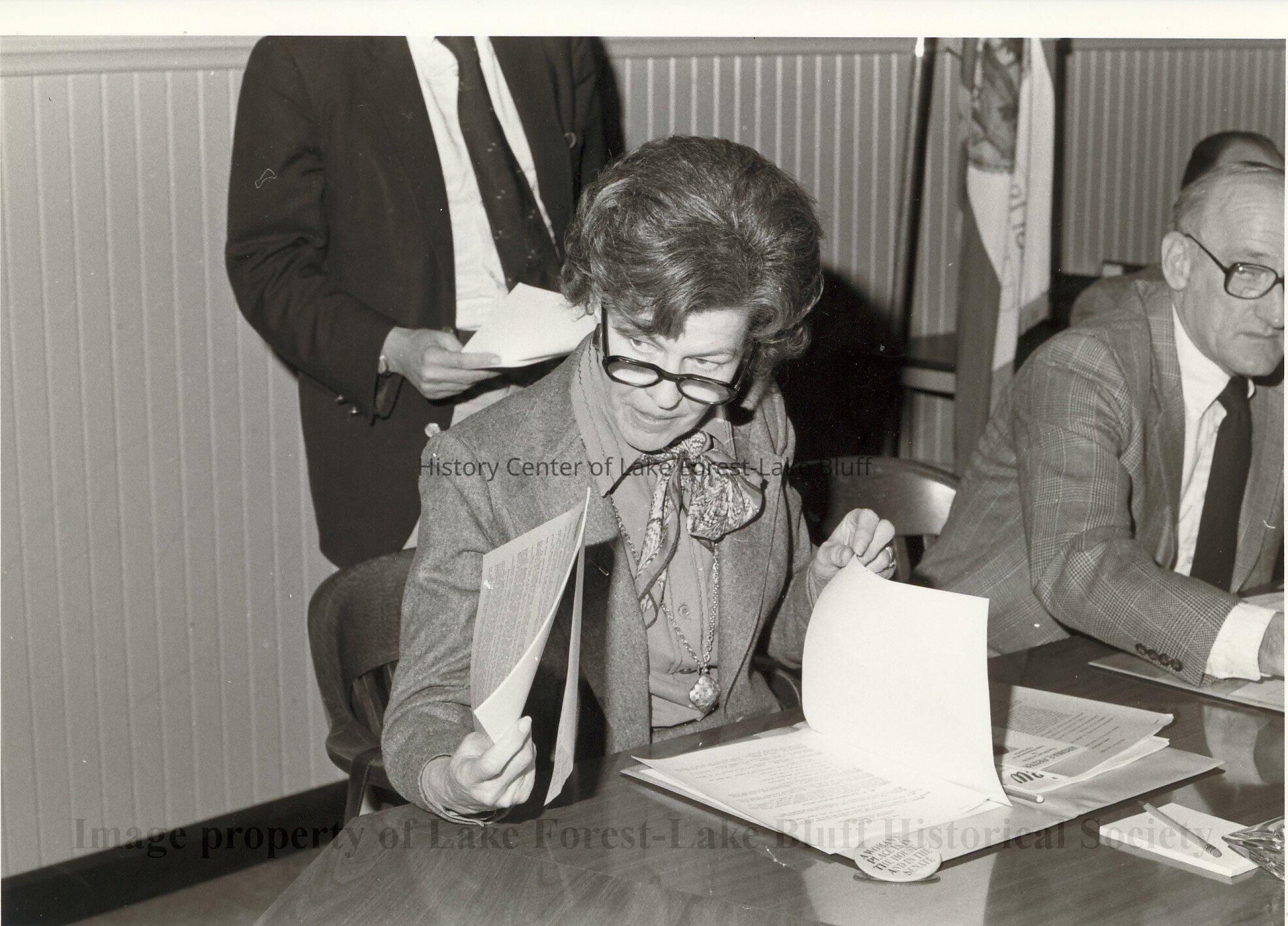Alderman Virginia Fiester (Frederick) at City Council meeting at CIty Hall February 5, 1978 Jim Swarthout on her left
