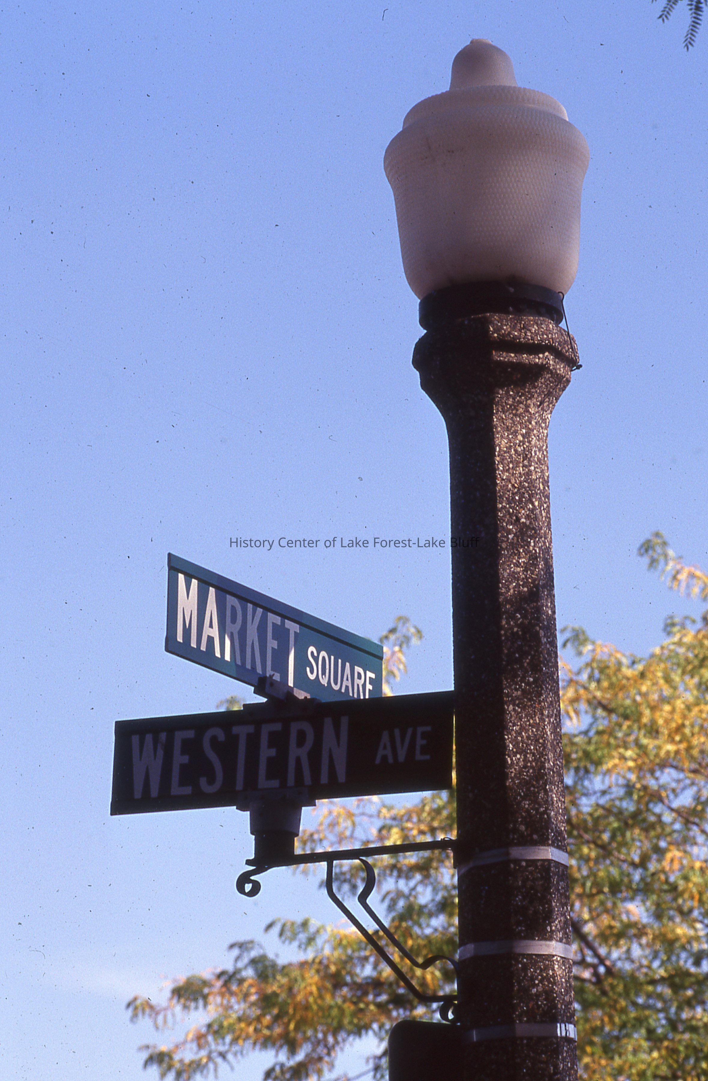 A photograph of the street sign at the intersection of Western Ave and Market Square.