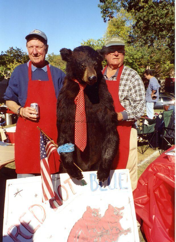 2004 Lake Bluff Ribfest October 2004. Dave and Joe O'Neill with taxidermy bear.