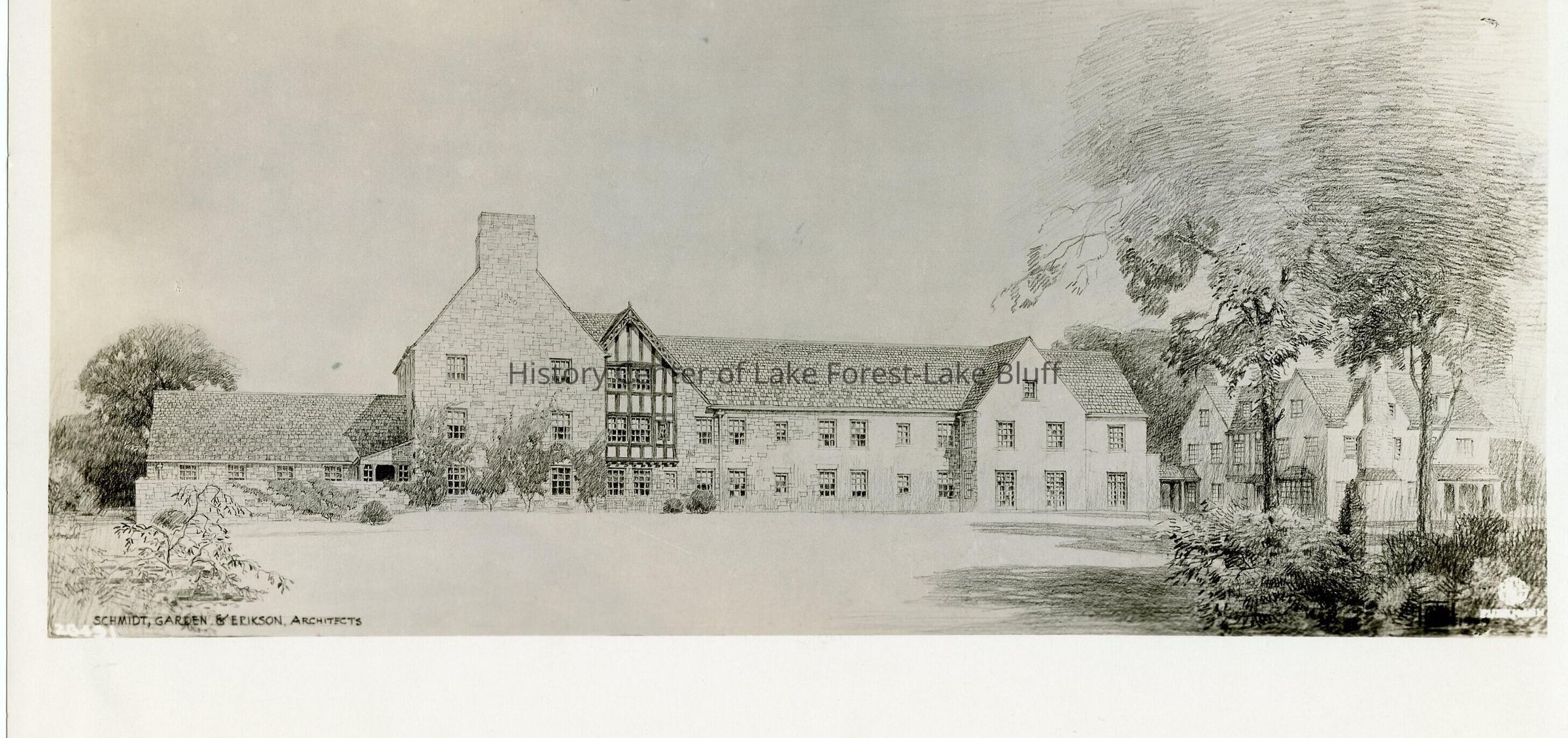Drawing of plans for Lake Forest Hospital, 1940s, by Schmidt, Garden & Erikson, Architects