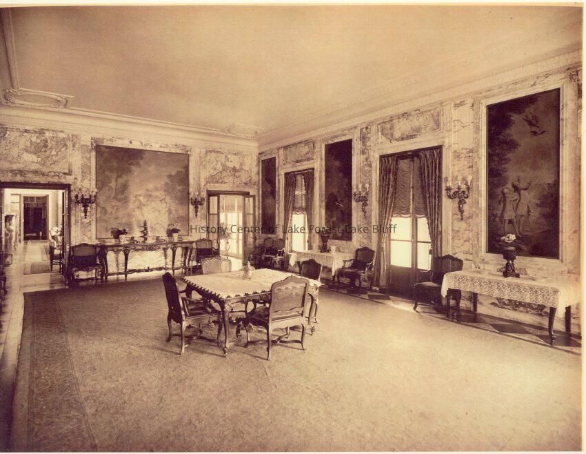 35 black and white exterior and interior photograph reproductions of Mellody Farm, circa 1920s. The J.Ogden Armour estate at 1500 West Kennedy Road now the Lake Forest Academy. 1904-1908 by Arthur Heun and landscape desginer Jens Jensen.