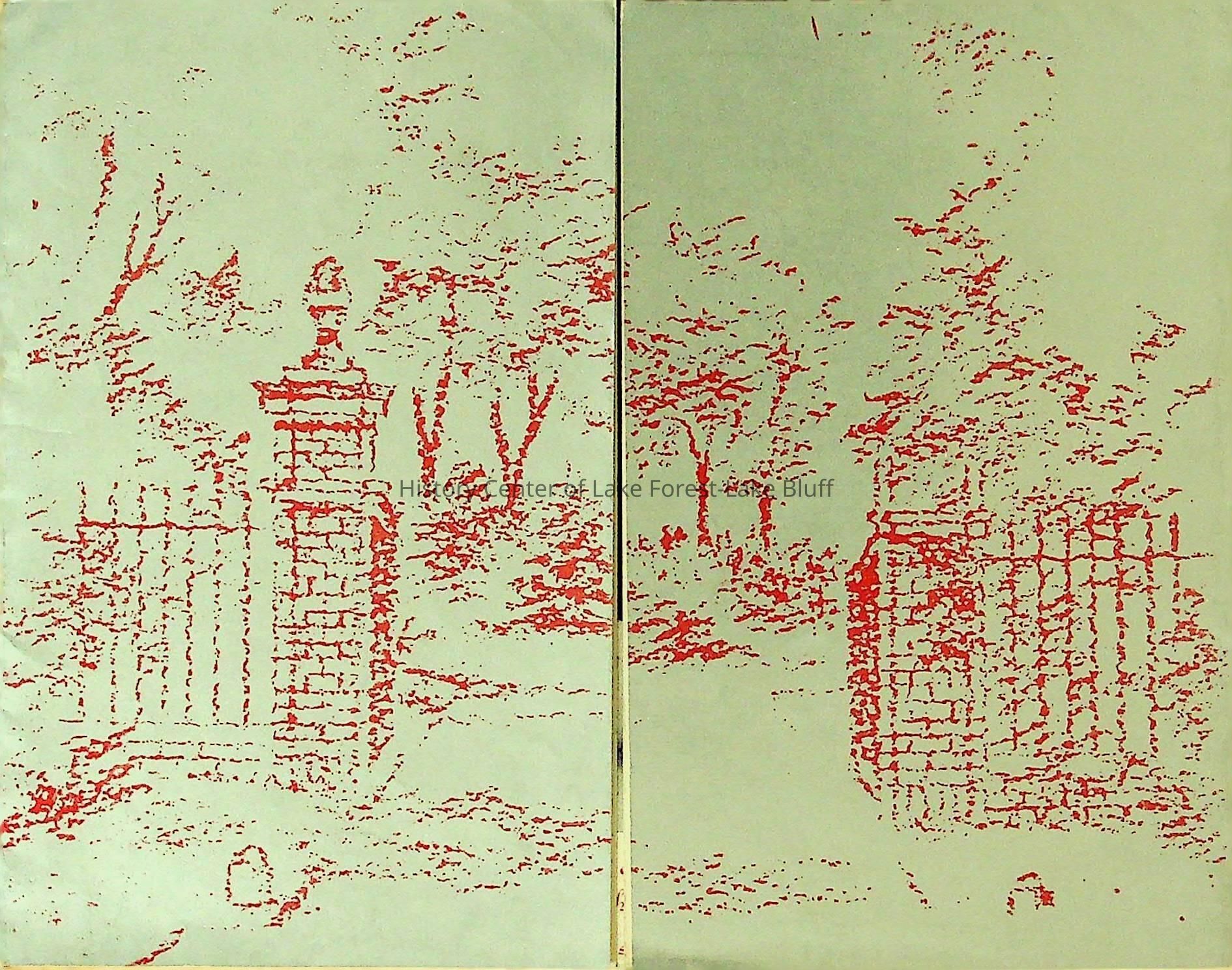 Metallic silver cardstock paper folded in half lengthwise and then folded to make two opening flaps. Front of the card features a stamped image of brick posts and gates. Card opens to show printed black and white photograph which is bordered by text which reads "Merry Christmas" and "Happy New Years", respectively. Beneath the photo a caption references the family's 25th Anniversary.