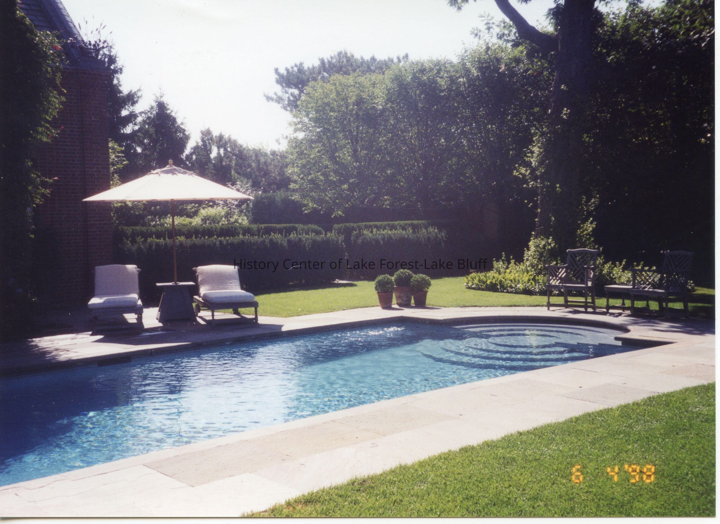 Color photograph of Posy Krehbiel's Garden at 930 E. Rosemary - Camp Rosemary. Date stamped June 4, 1998. Swimming pool. Built by Altounion Builders.