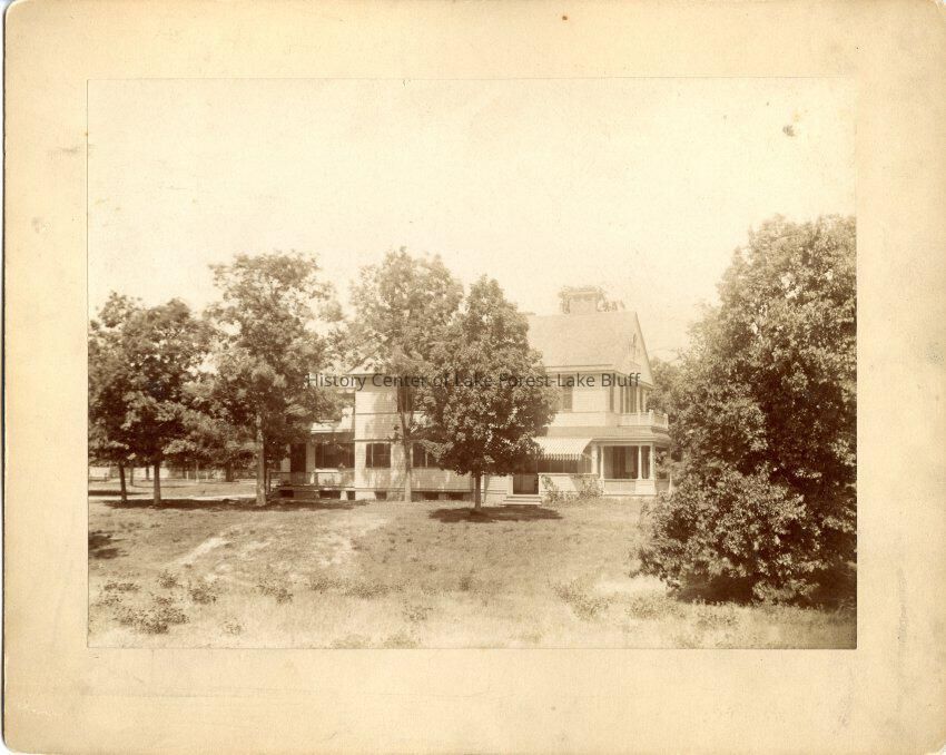 941 E. Westminster. Home of Henry Nelson Tuttle and Fannie Farwell Tuttle, and later the Kent Chandler family. Built 1891-1892, designed by Holabird and Roche, later renovated by David Adler Reverse reads, "view of the south end of the old home"