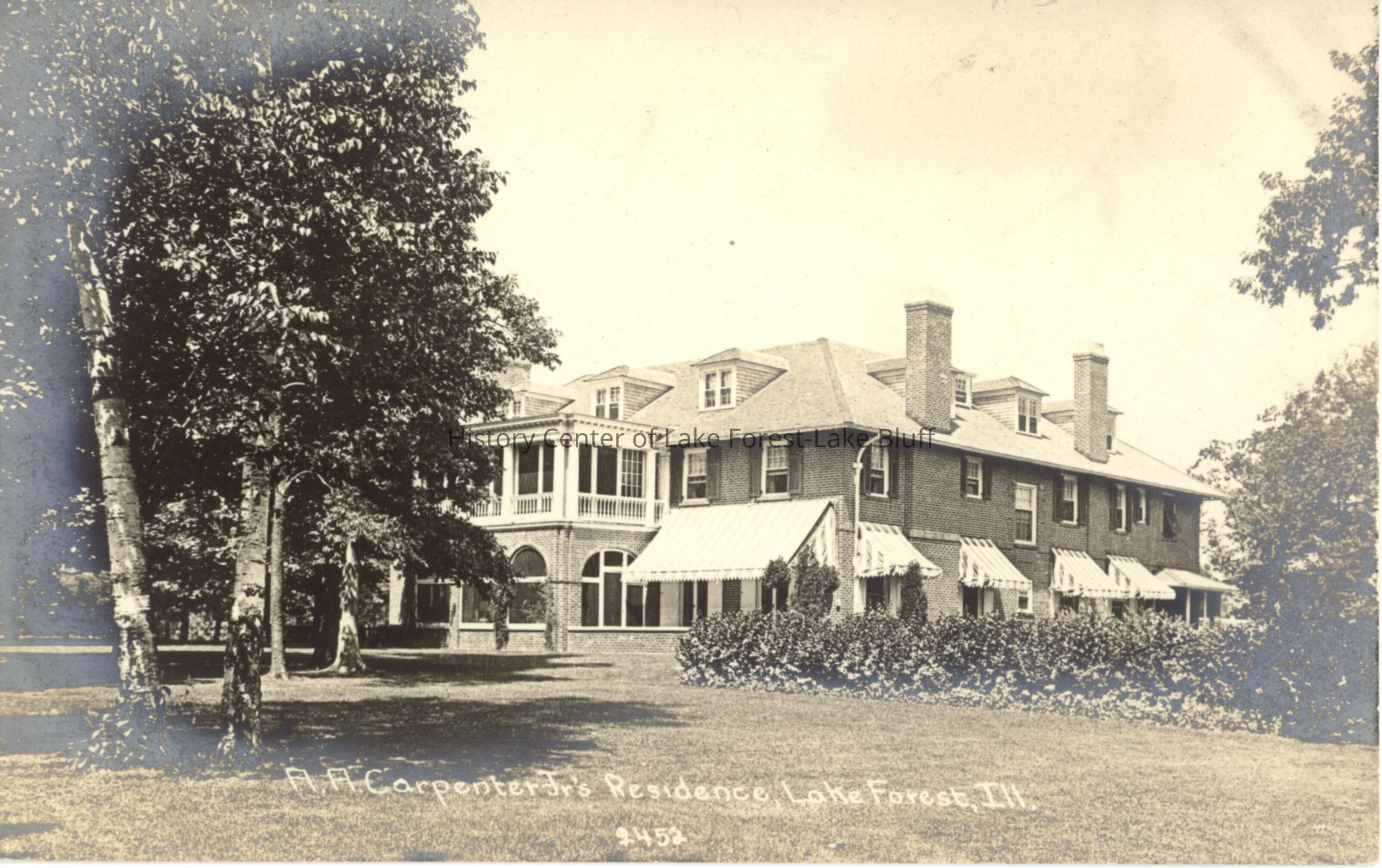 A. A. Carpenter Jr. residence, 745 Barberry Lane (formerly Huron Ave.), built 1906, designed by Howard Van Doren Shaw. Two-story brick residence with striped awnings.