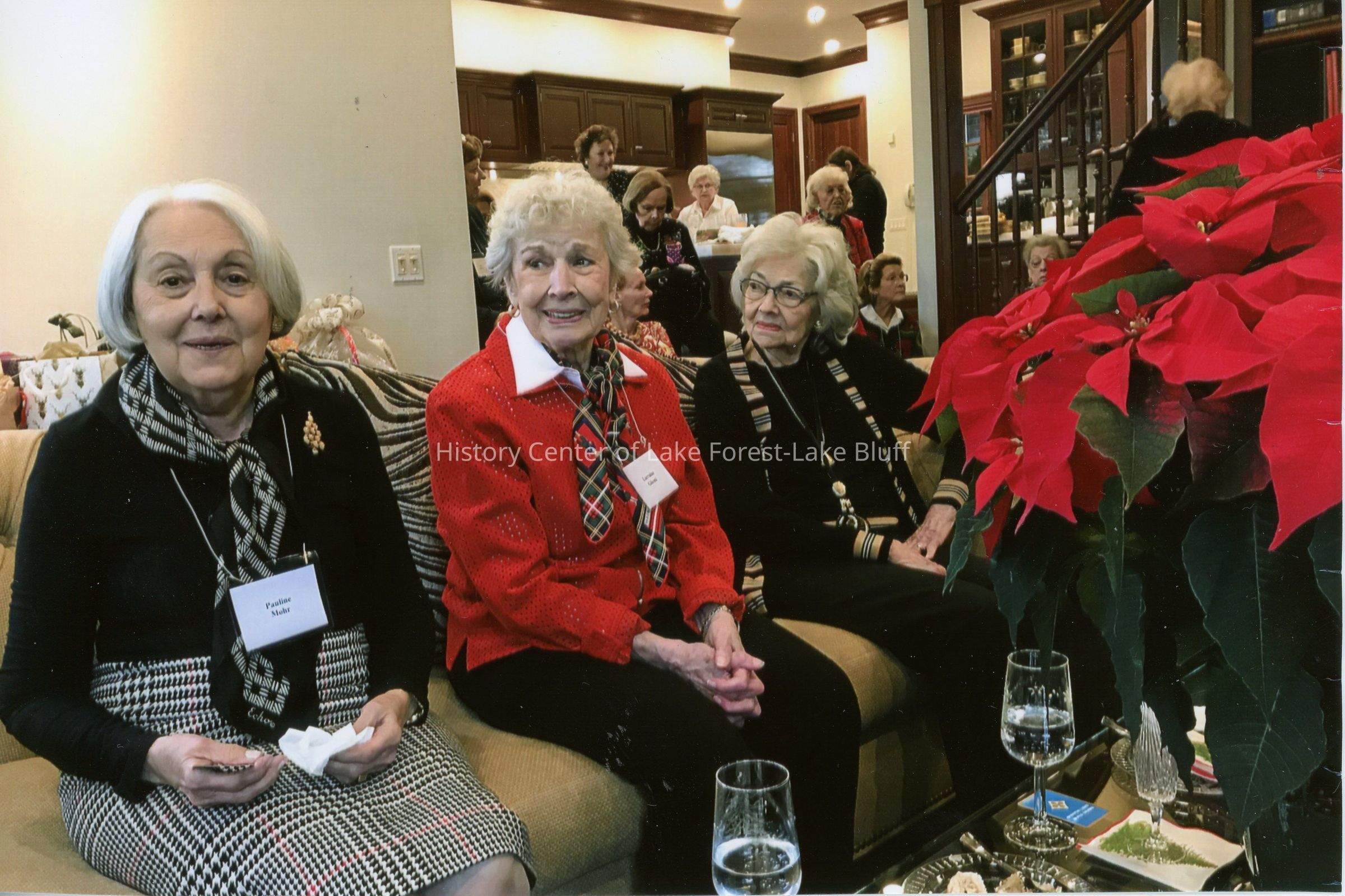 Three members of the Market Square Questers sitting on a couch at a Christmas lunch, 2022. The woman on the left is Pauline Mohr. The other two are unidentified.Photograph Details