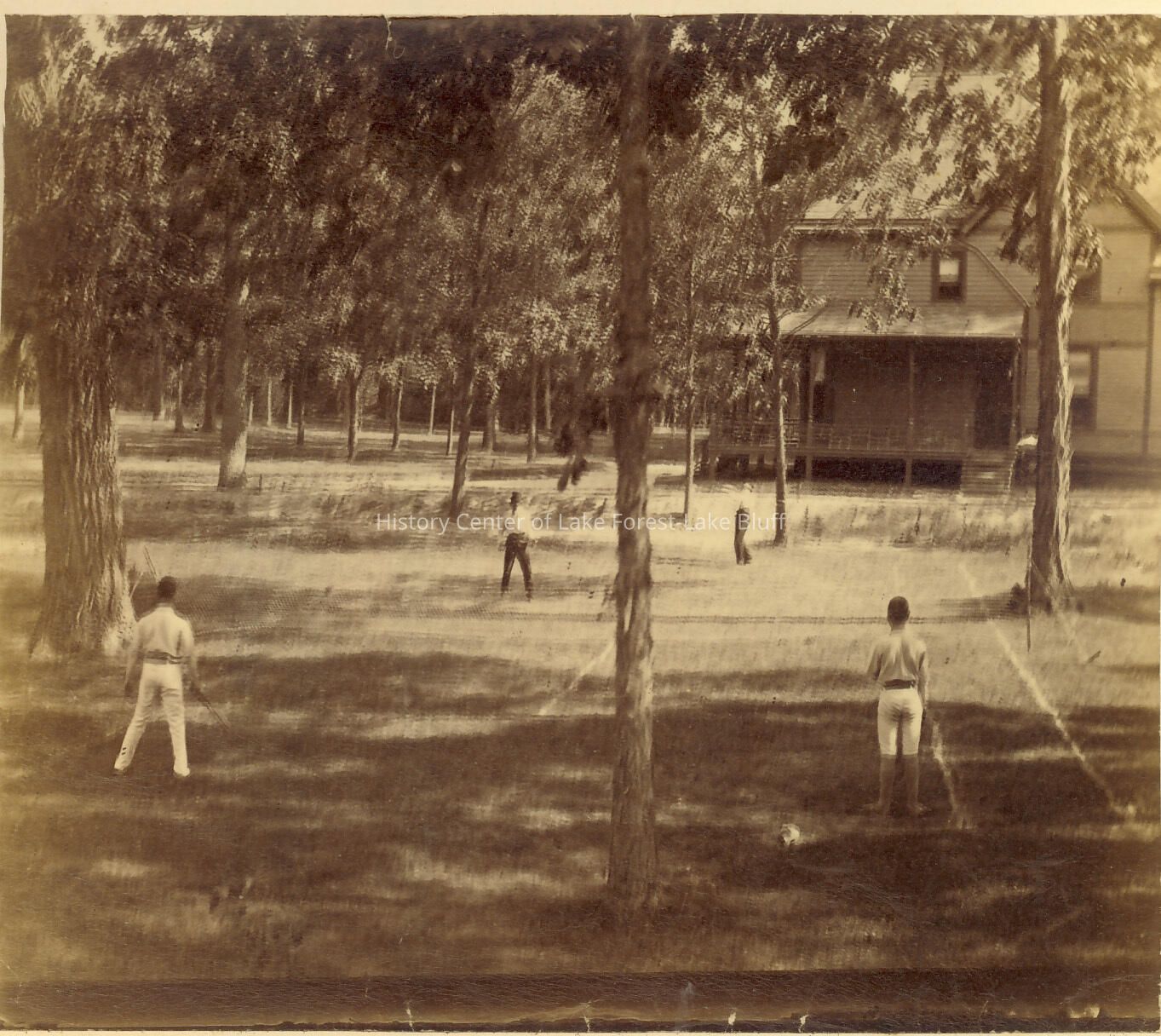 playing tennis Ms. McClure, Scott, Hi, Aubrey (40-love!) Gienhame (McClure Manse) 487 East Walnut Road, Lake Forest Rev. James G. K. McClure; Cobb & Frost 1885 photo is mounted on an album page