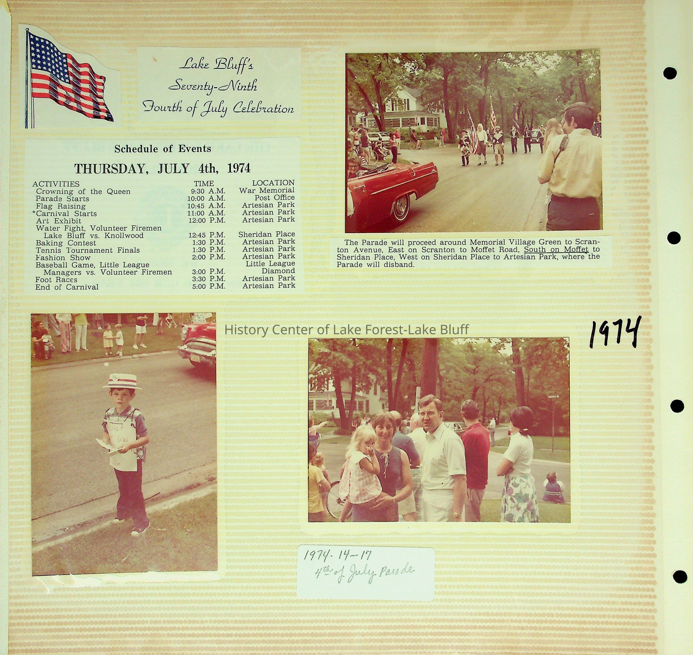14: The schedule of events for the 1974 Lake Bluff 4th of July celebration.