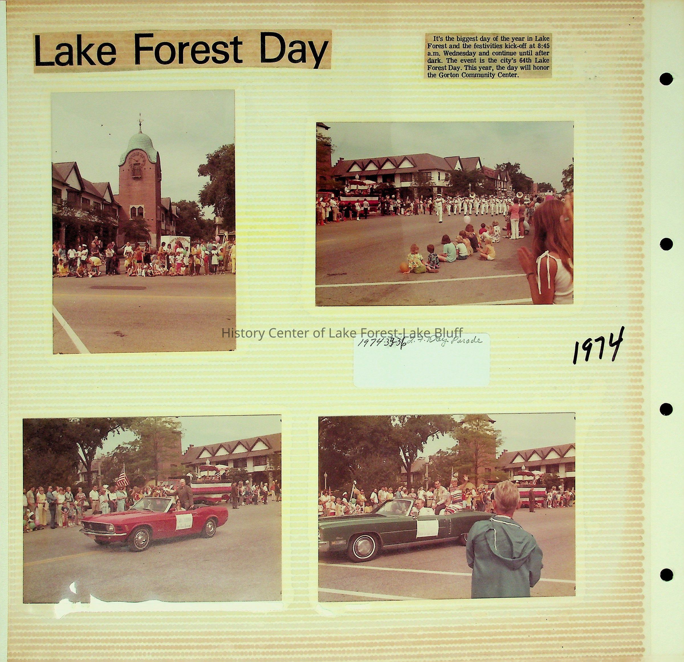 33: A photograph of a market square tower during the 1974 Lake Forest Day parade.