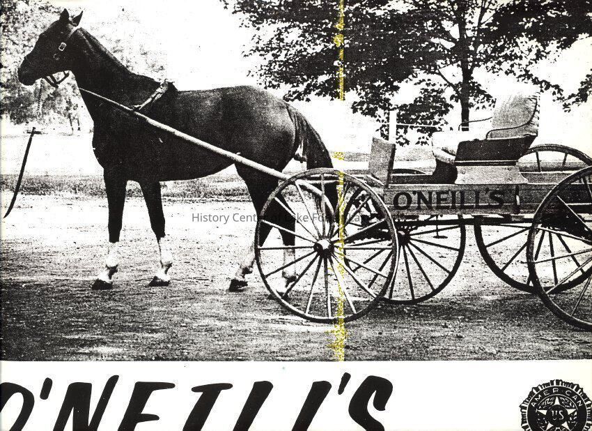 Horse and carriage used in Lake Forest Day Parades. Ad for O'Neill's Hardware