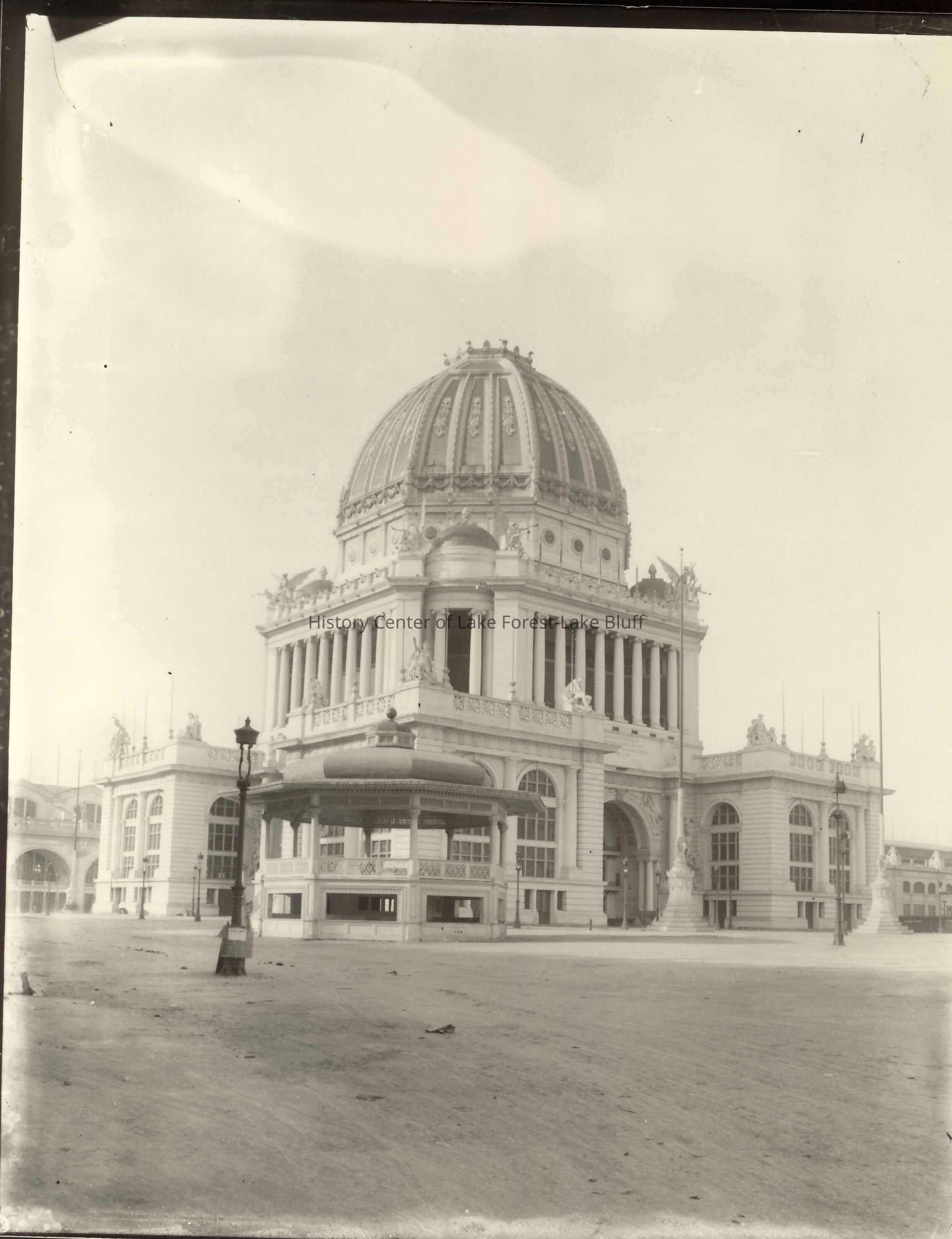 Beaux Arts style structure with dome, angel statues and columns beneath dome see also 2004.32.90